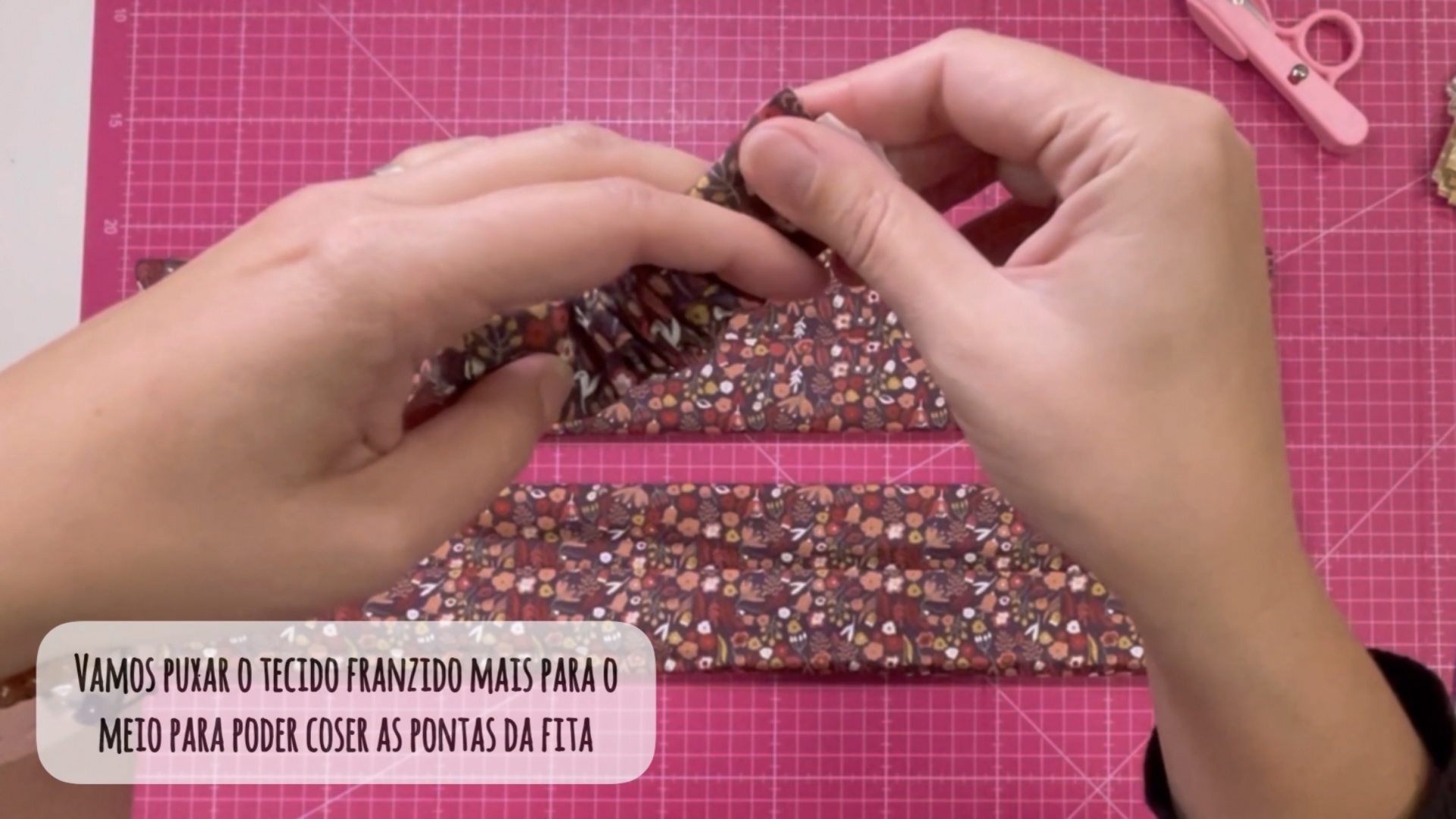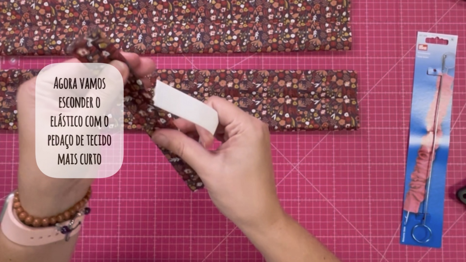 Vamos fazer uma fita de cabelo? Precisamos de: 2 pedaços de tecido com 50x20cm 1 pedaço com 8x20 Elástico de 2cm com 12cm Vamos dobrar os três pedaços de tecido ao meio na vertical e costurar na lateral com a margem do calcador. Viramos do direito. https://youtu.be/px4vd8h-oss
