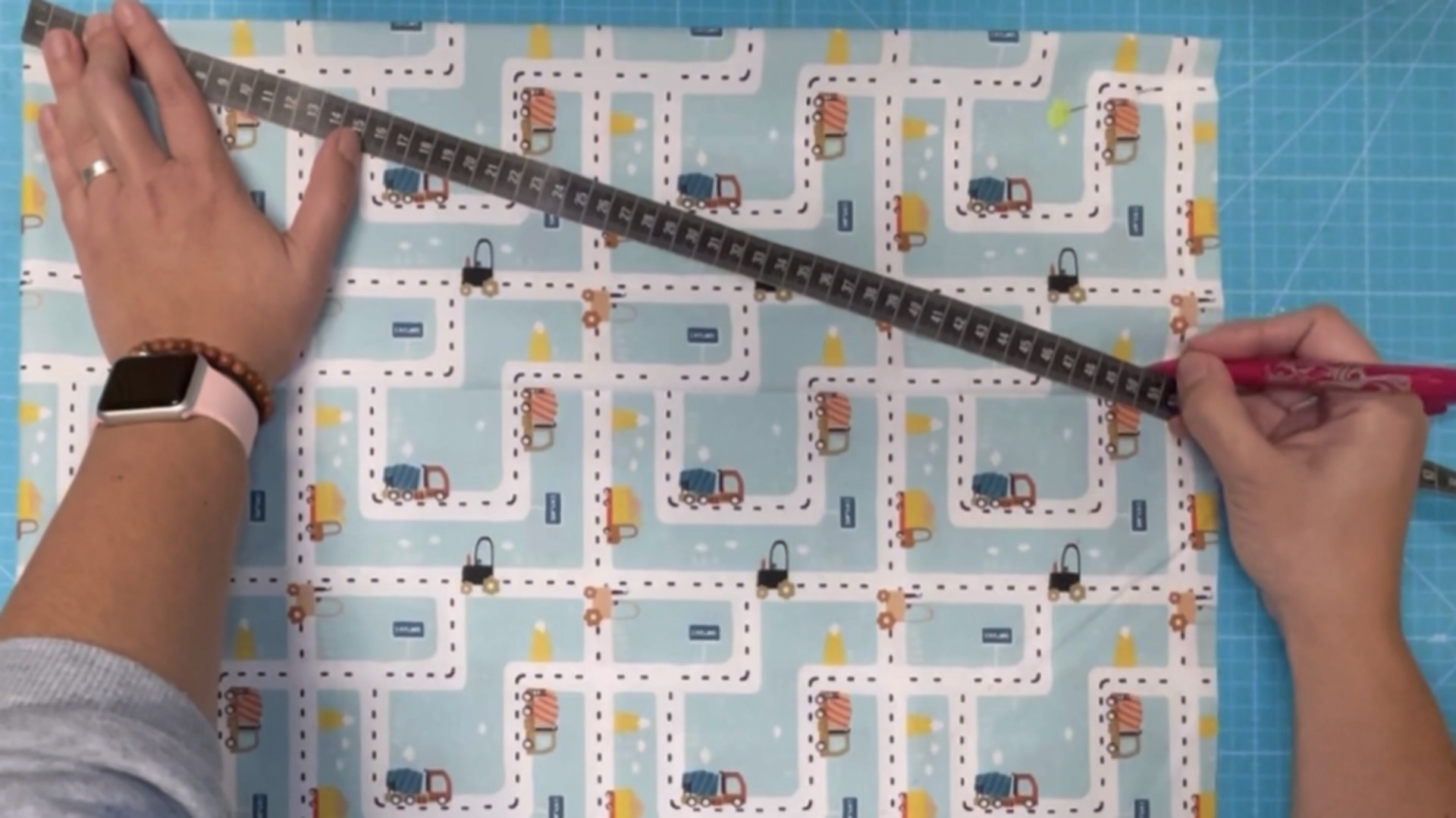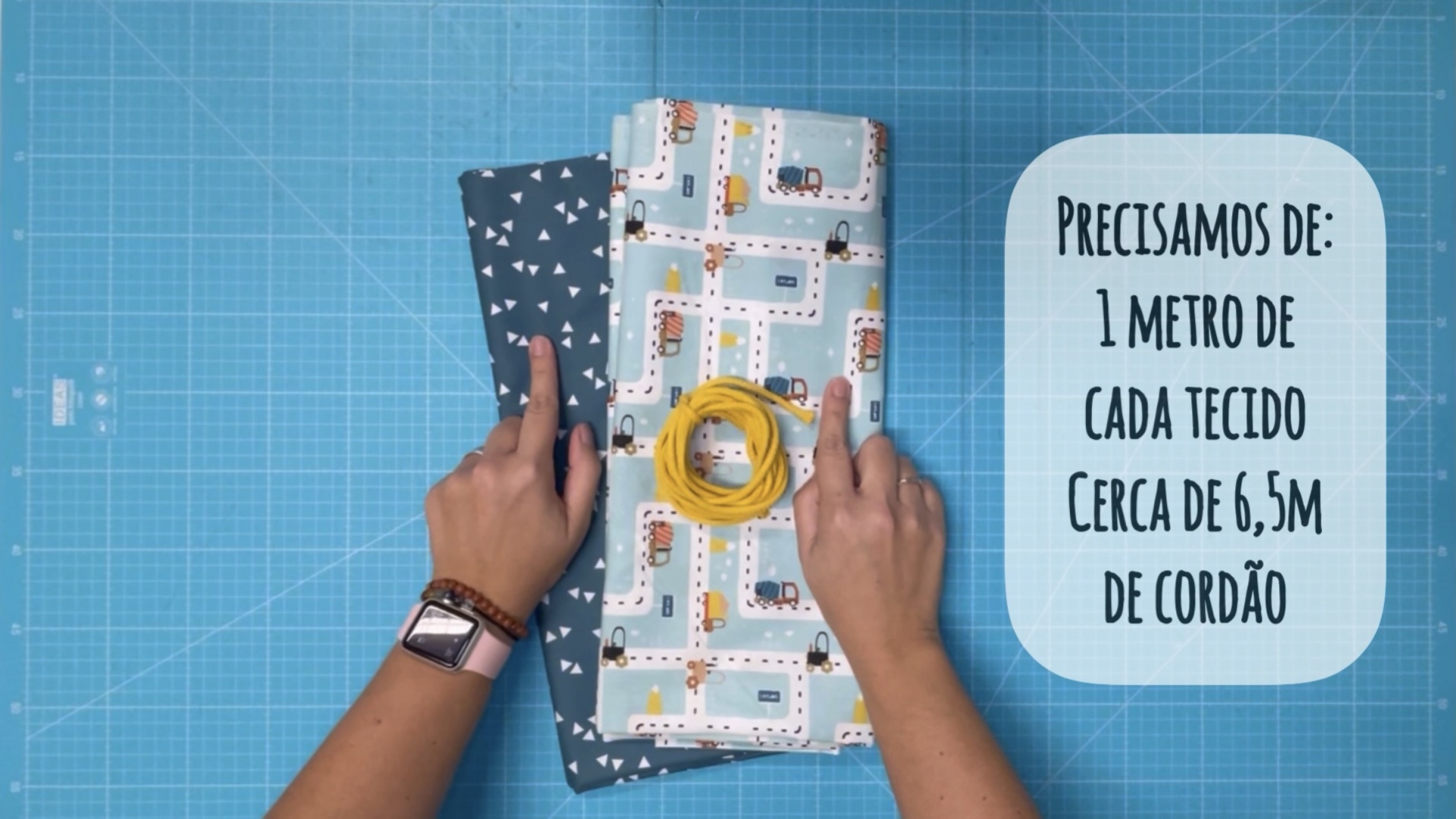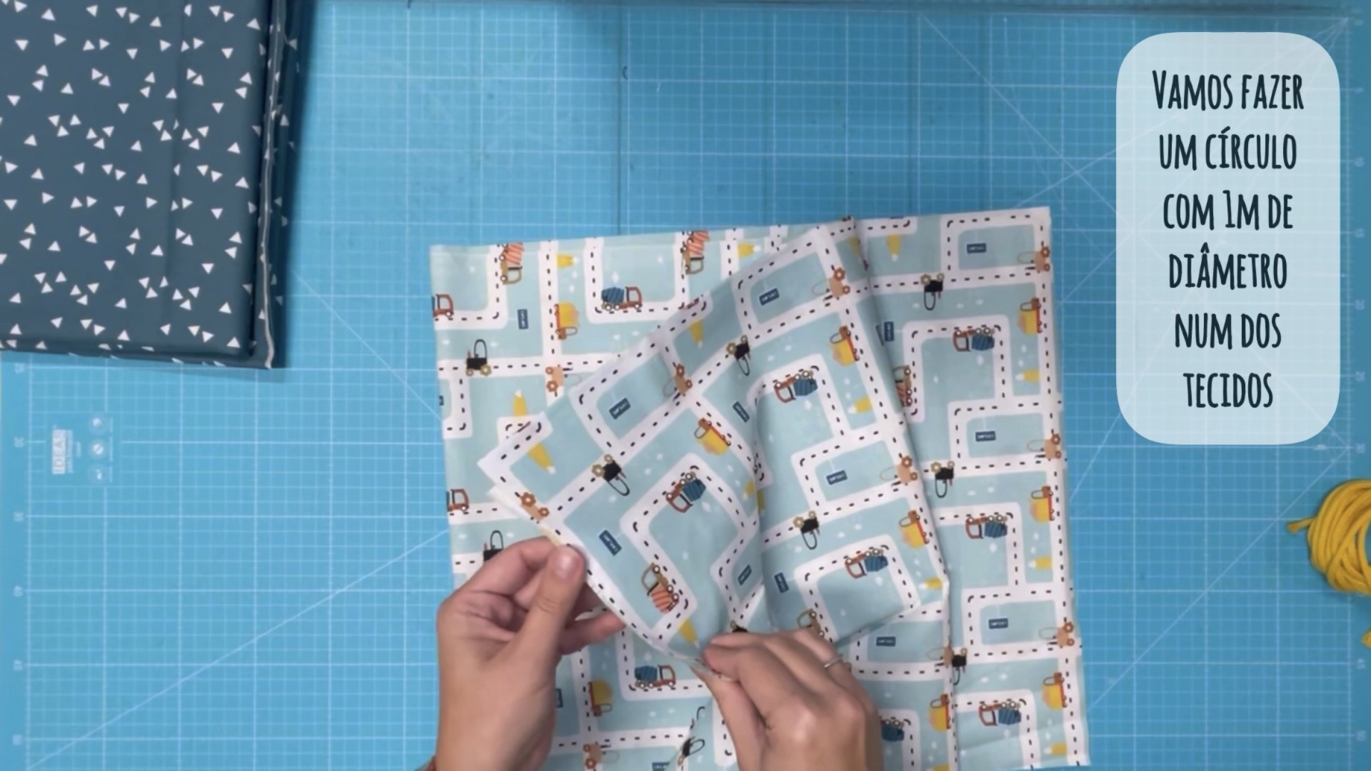 Para isso vamos dobrar o tecido em 4 partes, garantindo que temos 50cm tanto na altura como na largura.