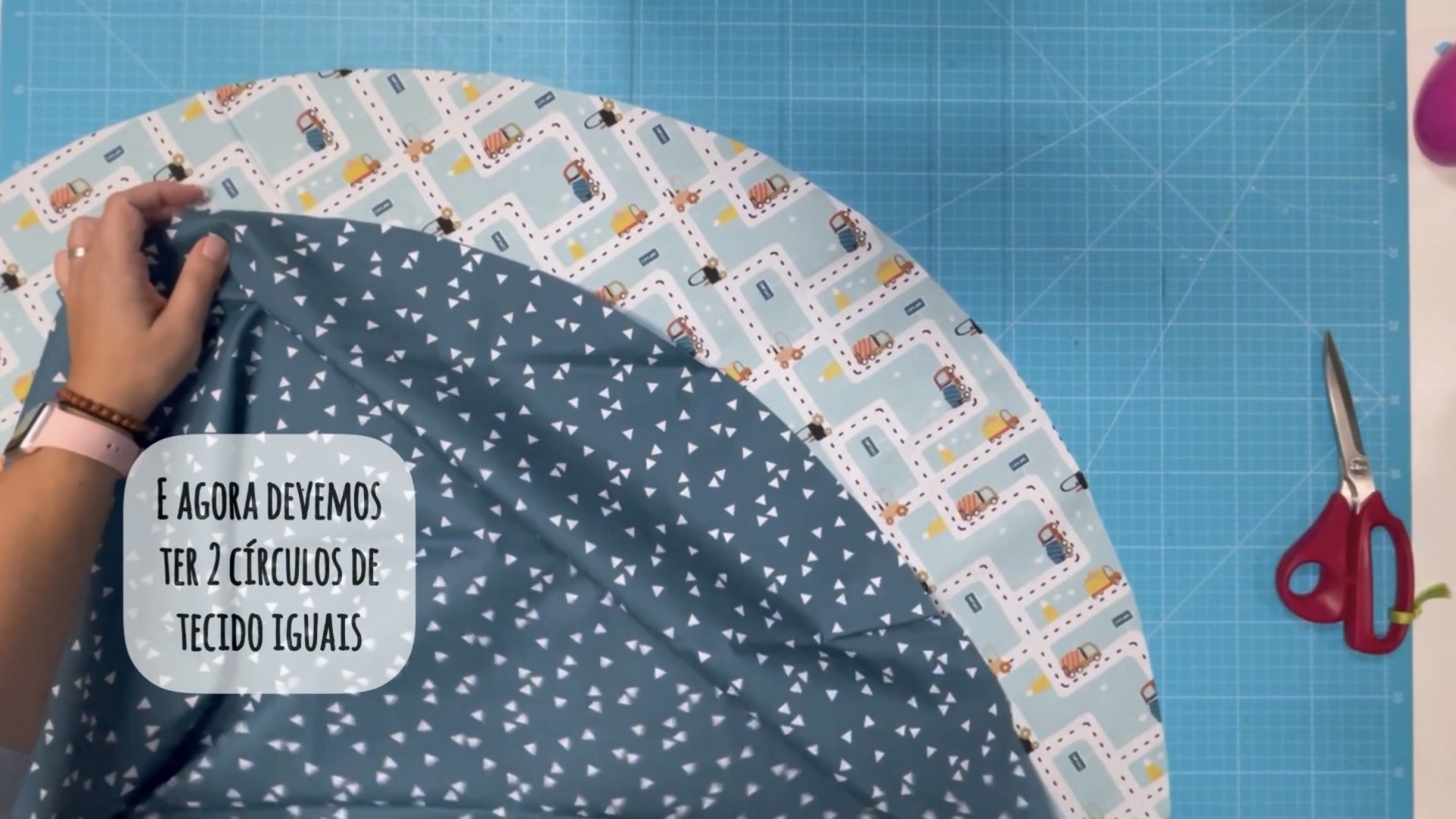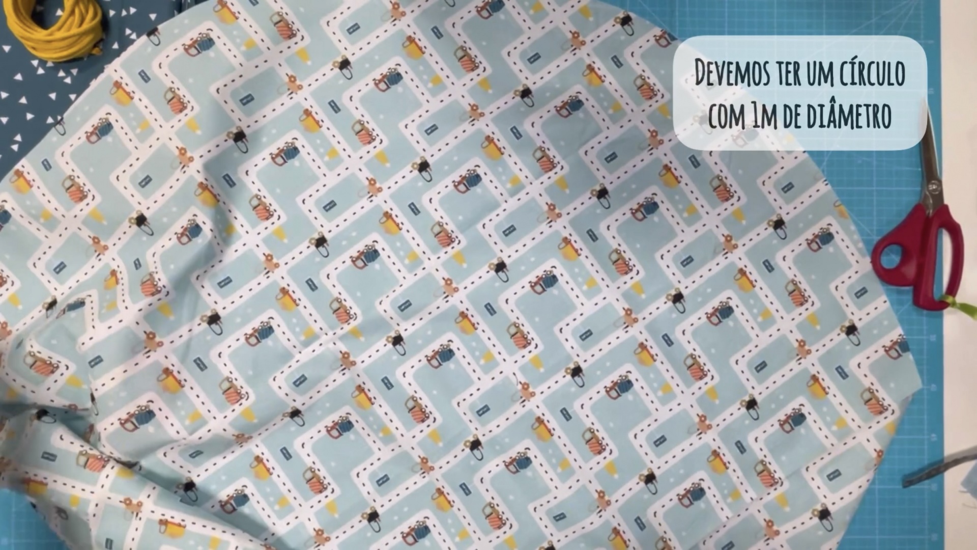 Depois de abrir o tecido devemos ter um circulo com 1m de diâmetro.