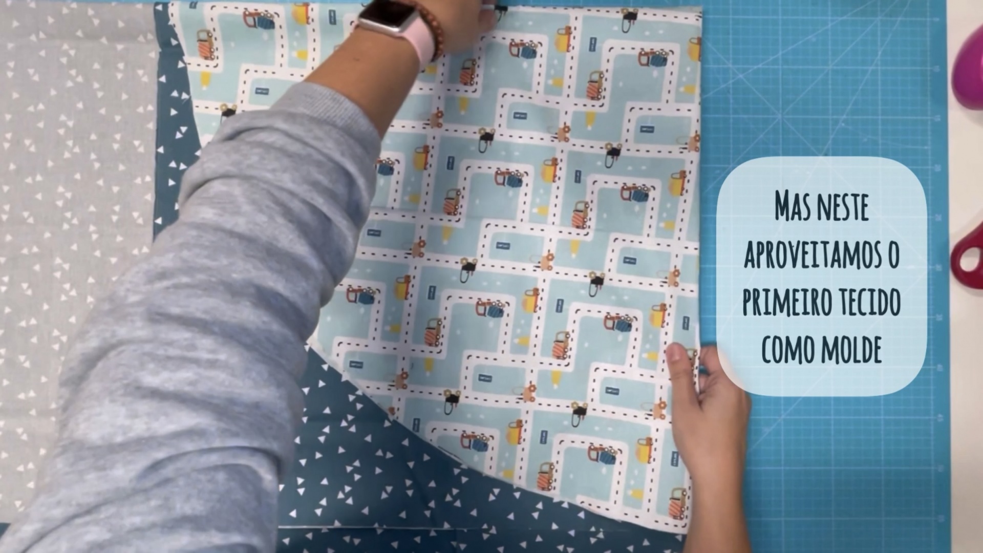 Vamos repetir o processo para o outro tecido, mas neste caso vamos usar o primeiro tecido como molde.