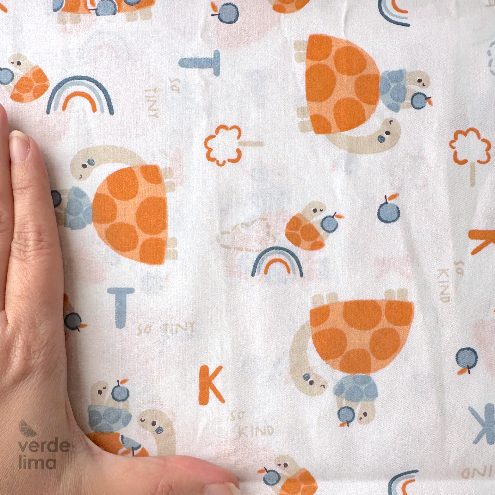 Tecido de Algodão - Animal Alphabet - Tartarugas e letras fundo branco