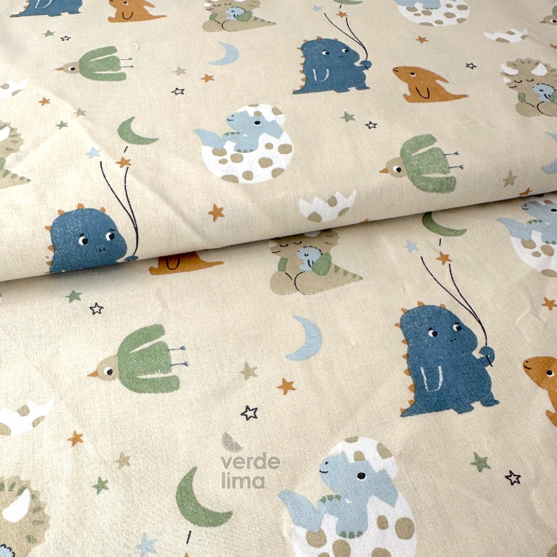 Tecido de Algodão - Baby dinossaur - Fundo bege