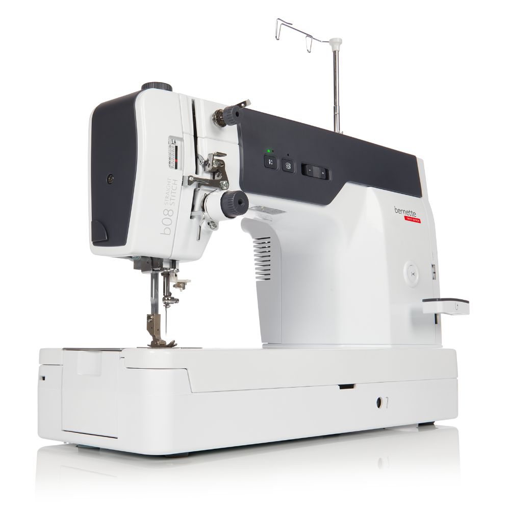 O corte de linha automático proporciona conforto adicional, enquanto a bobine extra grande e o bobinador com motor independente permitem sessões de costura mais longas sem interrupções. O robusto chassi em metal da b08 impede vibrações e garante, assim, uma costura perfeita - a escolha perfeita.
