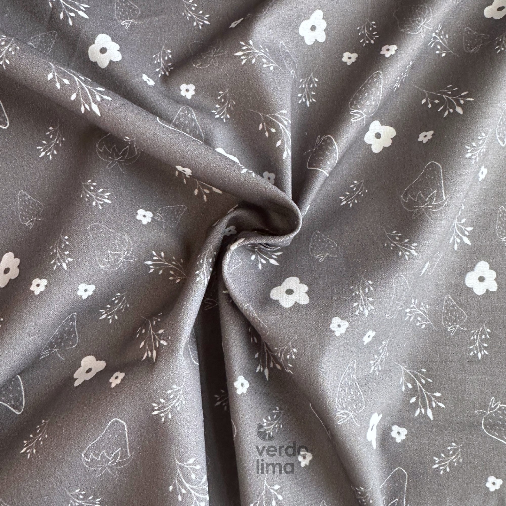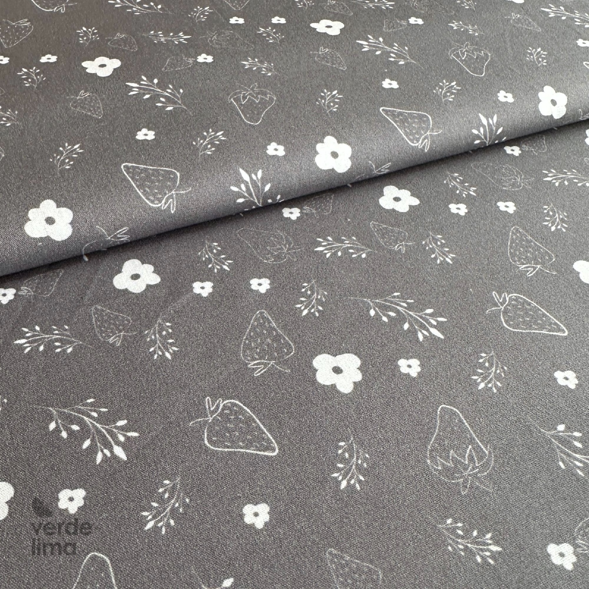 Tecido de Algodão - Bichinhos e raminhos - Flores e moranguinhos