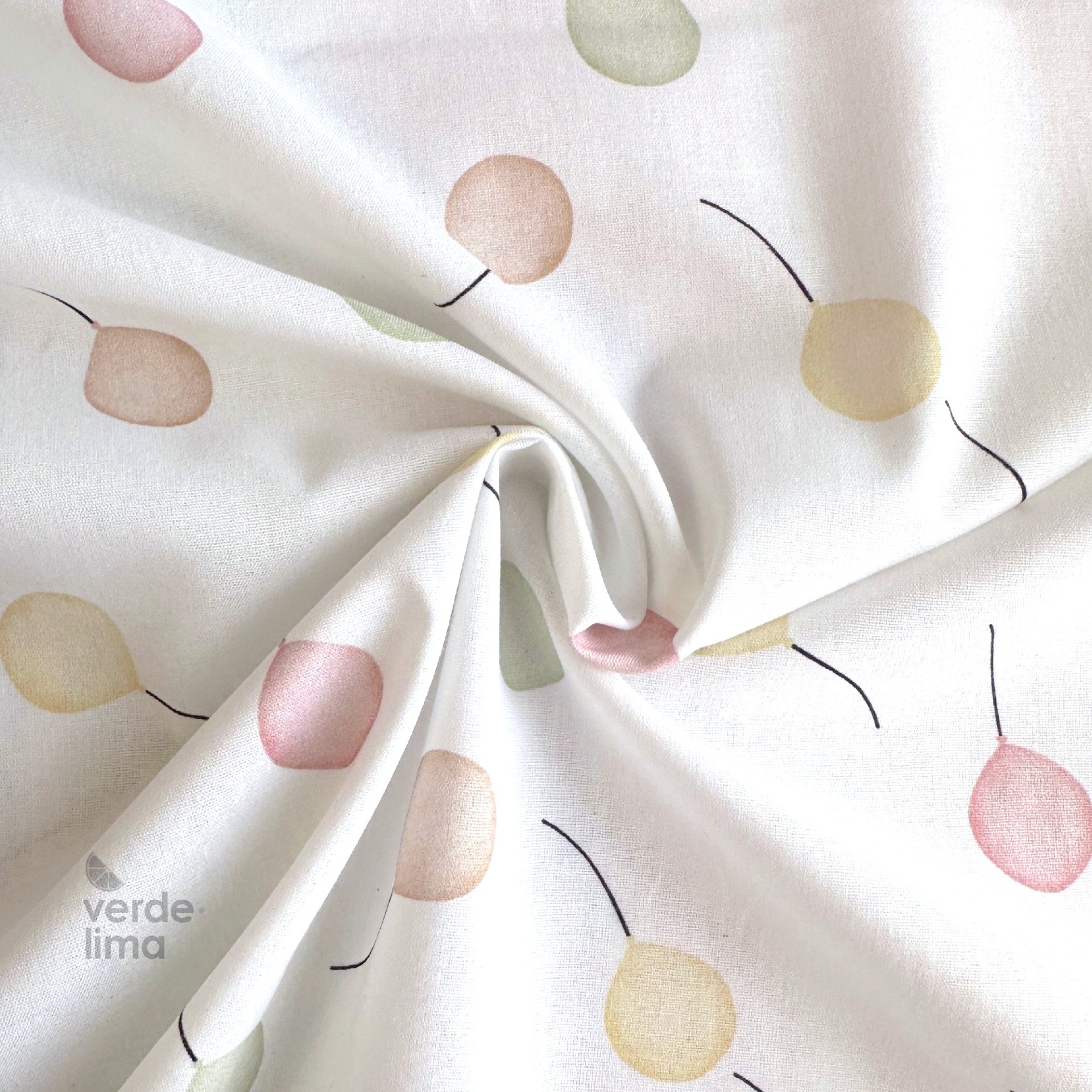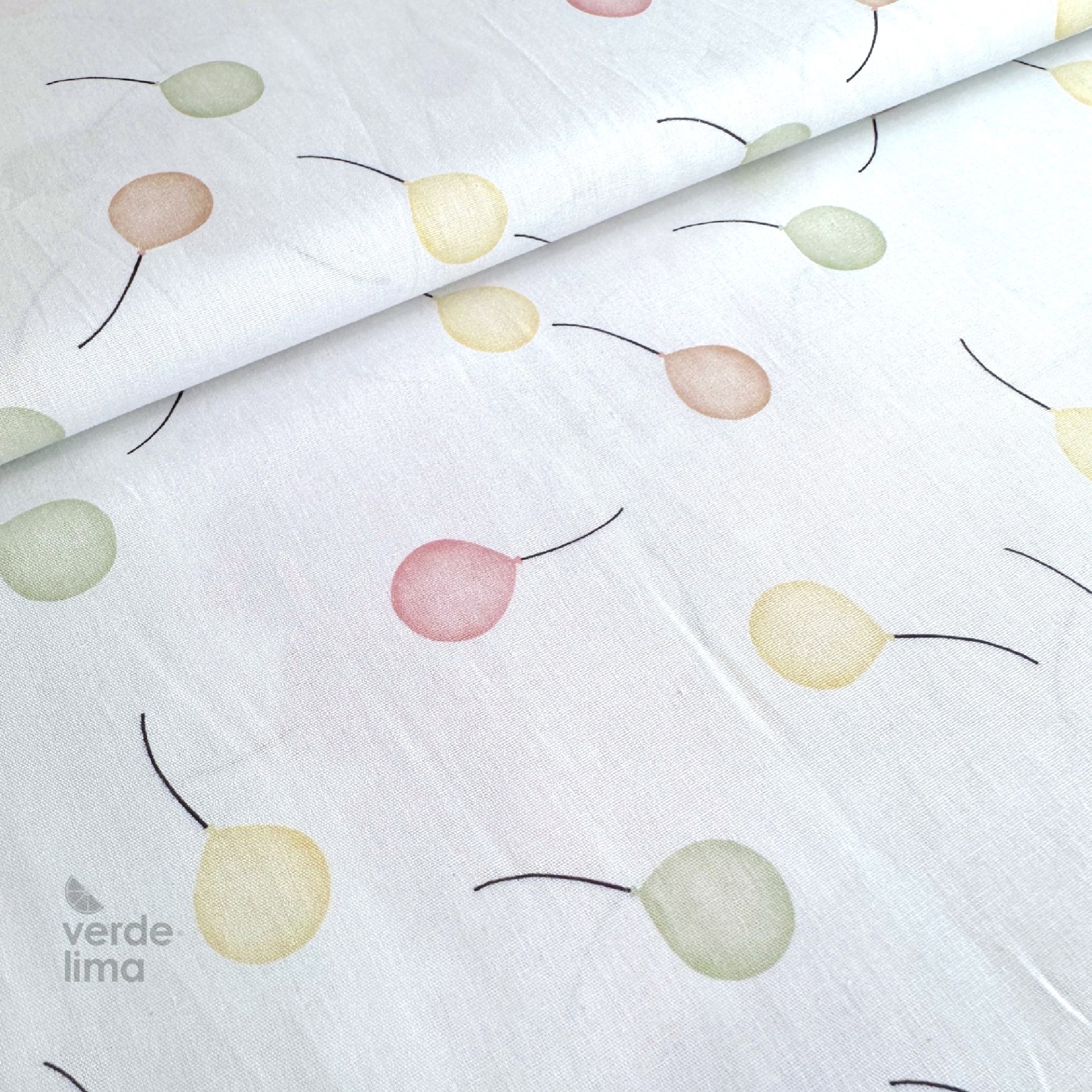 Tecido de Algodão - Bichinhos nas nuvens - Balõezinhos rosa