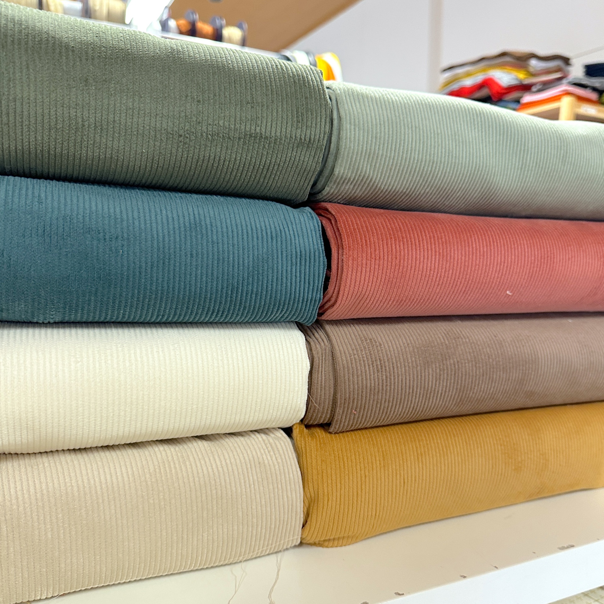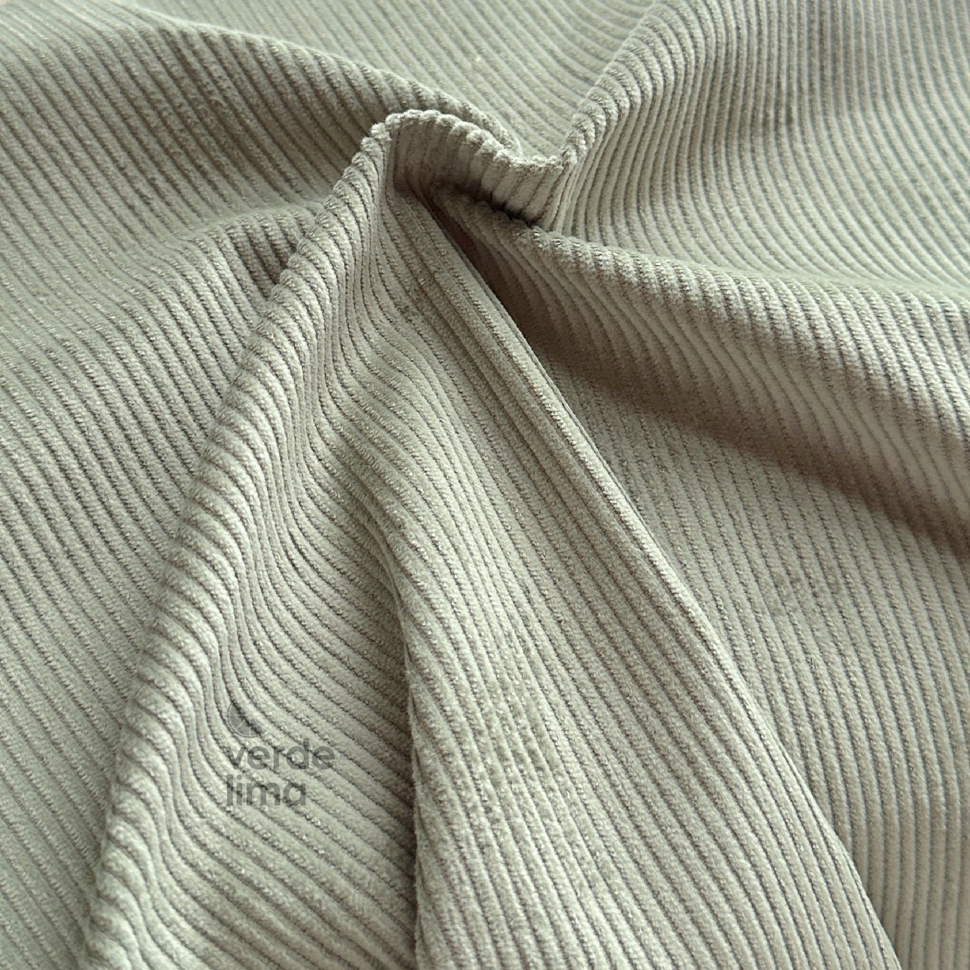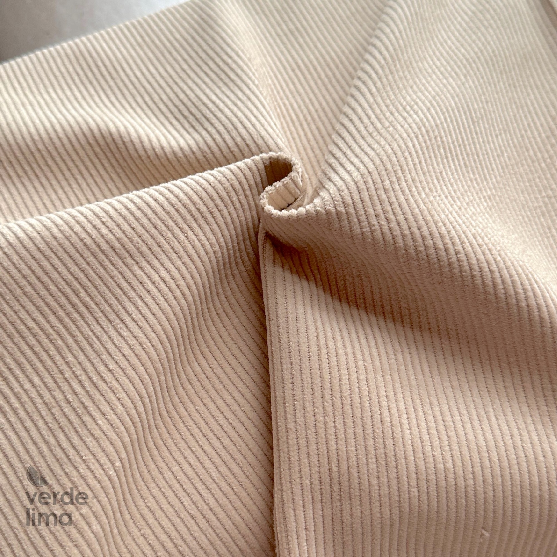 Bombazine com risca larga, muito macia, encorpada, ideal para casacos, calças e artigos de costura criativa como malas ou mochilas.