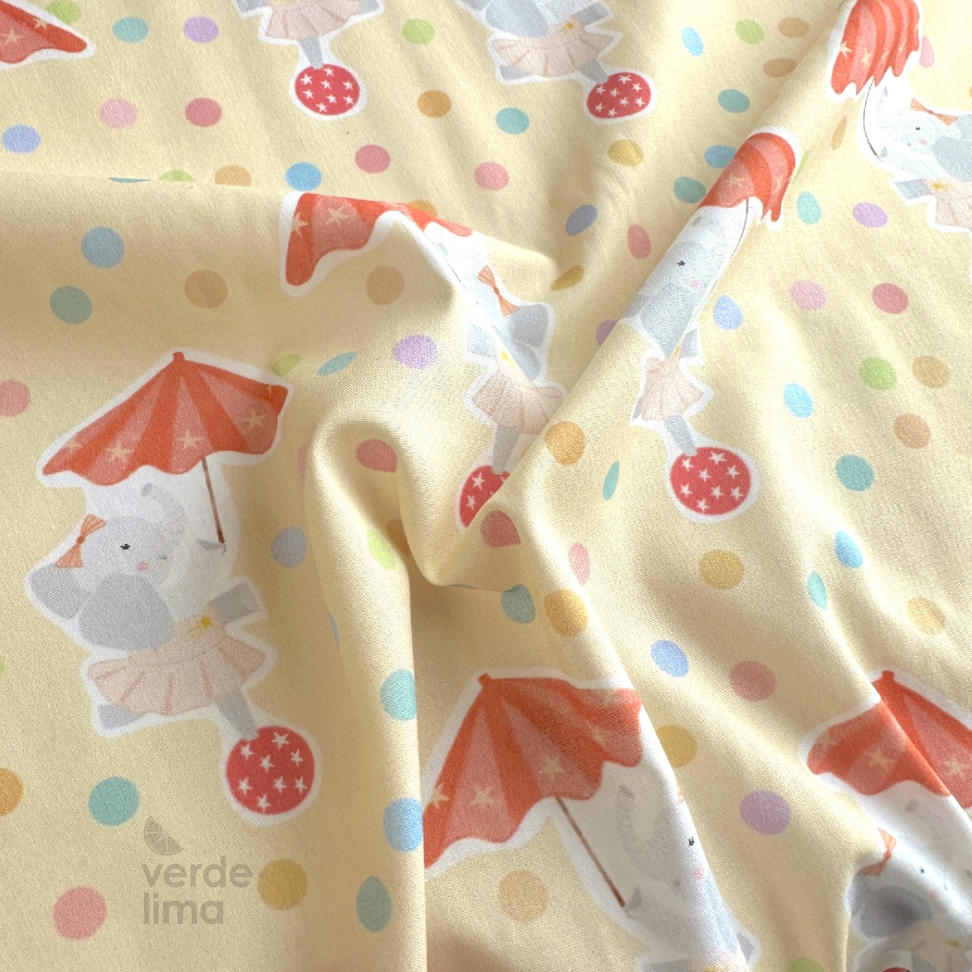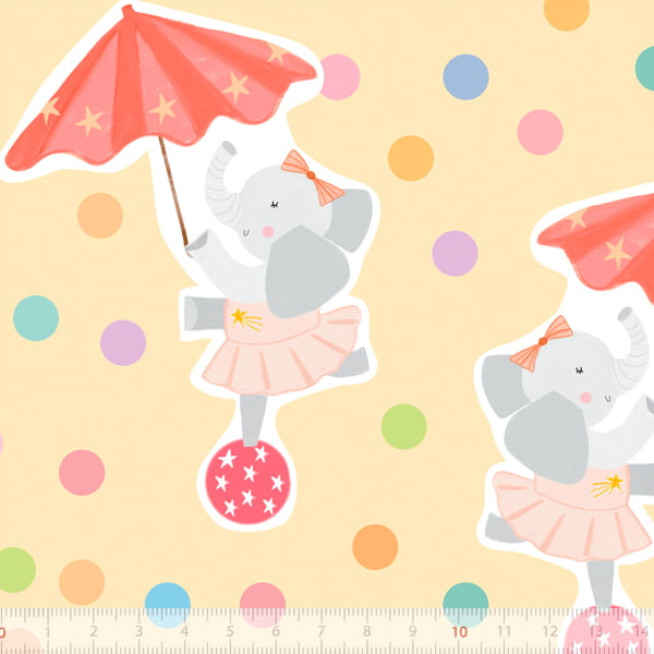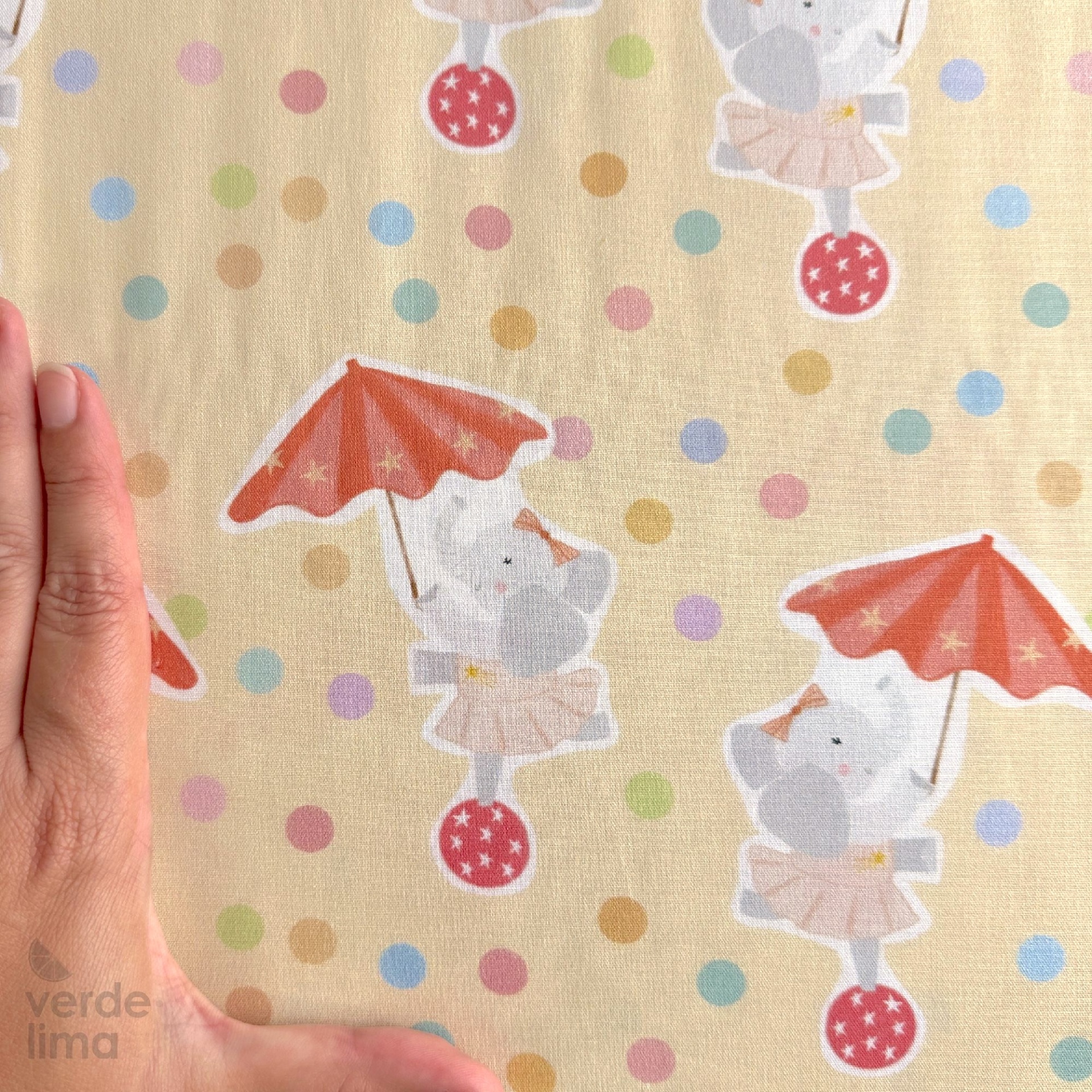 Tecido de Algodão - Circo dos Bichos - Elefante equilibrista