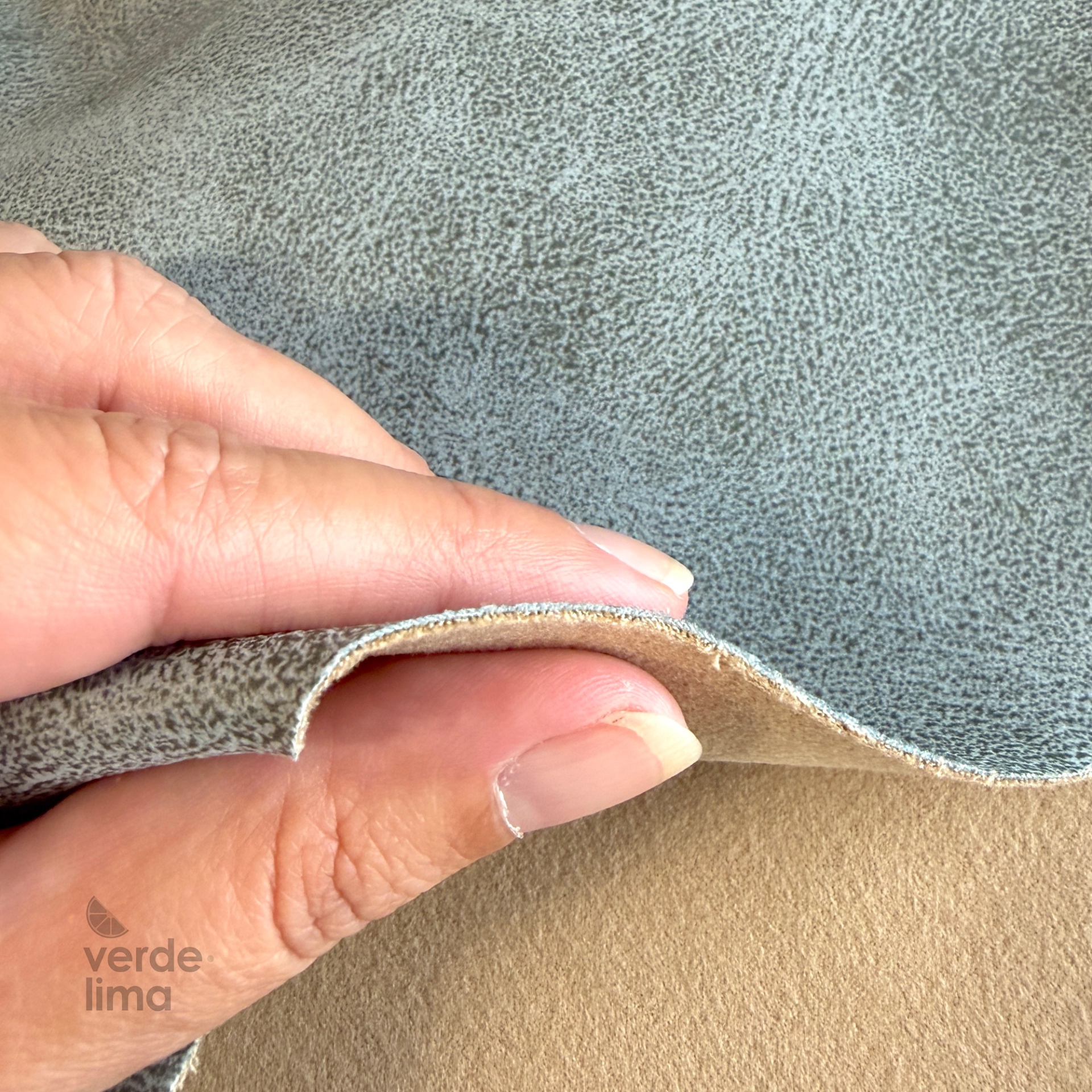 Tecido encorpado com toque aveludado e estampa a imitar couro, perfeito para malas, mochilas, bolsas, etc.