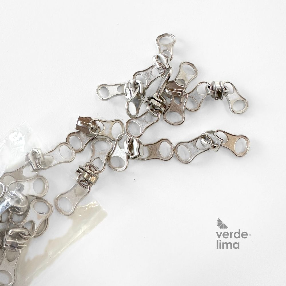 Cursores para fecho Zipper malha 5 prateado, vendido à unidade.