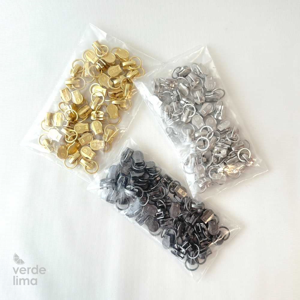 Cursores compatíveis com fecho de nylon malha 5 ou metalizado malha 5 branco ou preto a metro.