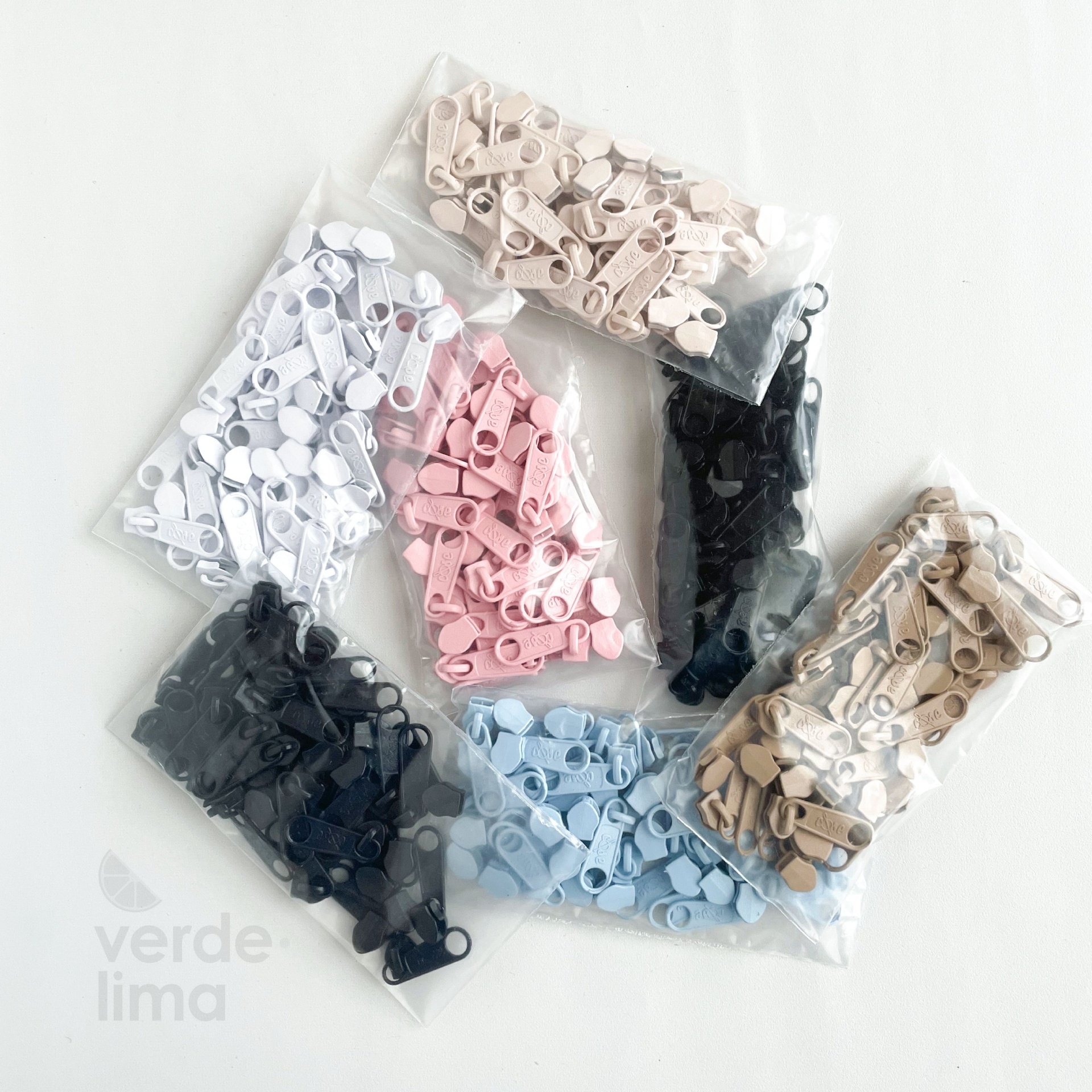 Cursores compativeis com fecho de nylon malha 5 a metro ou em bobine (vendido em separado).