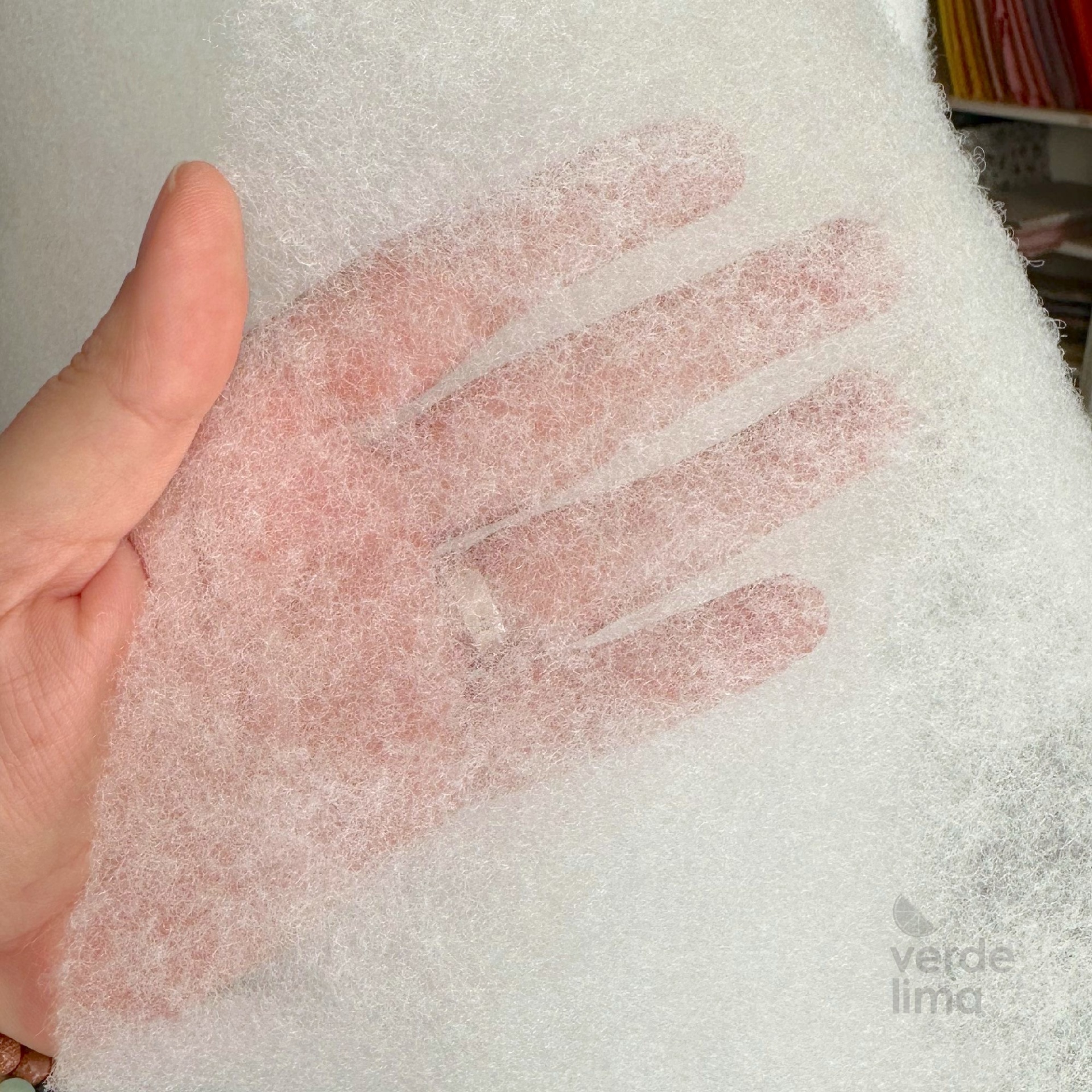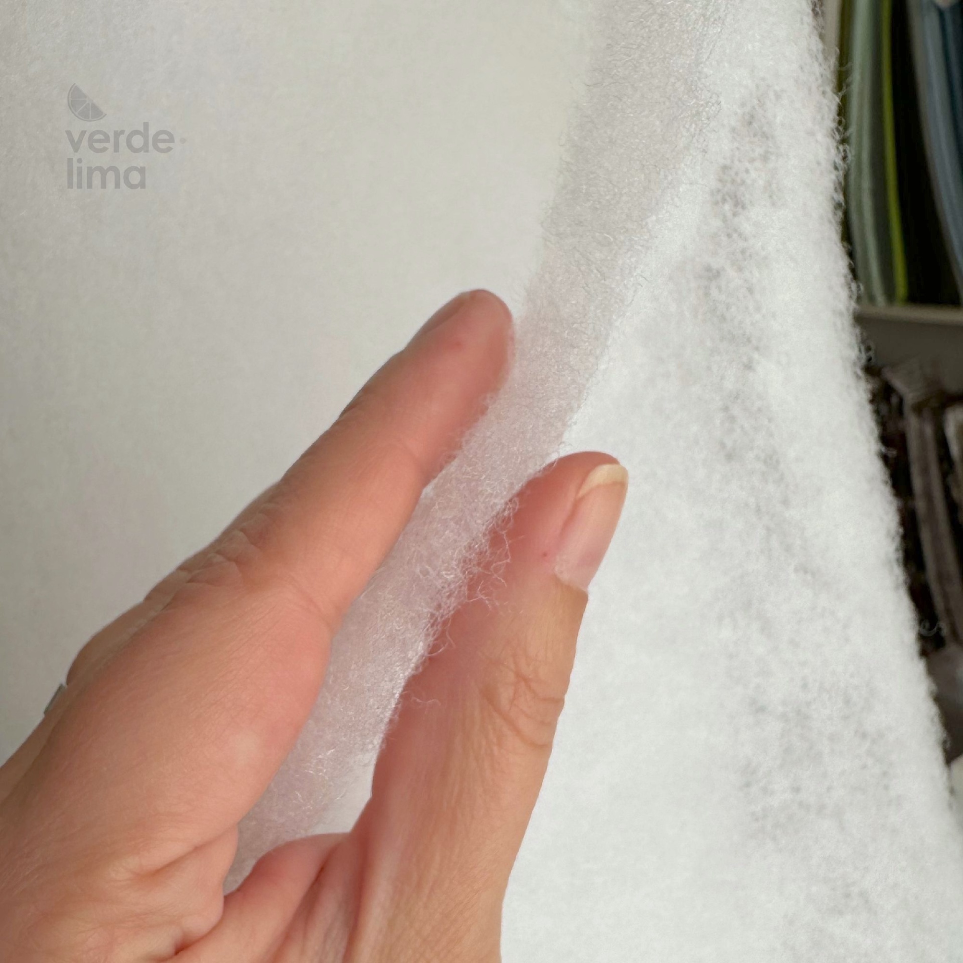 Por ser muito fofo convém ser colocado sempre entre dois tecidos para evitar que fique preso nos dentes da máquina de costura.