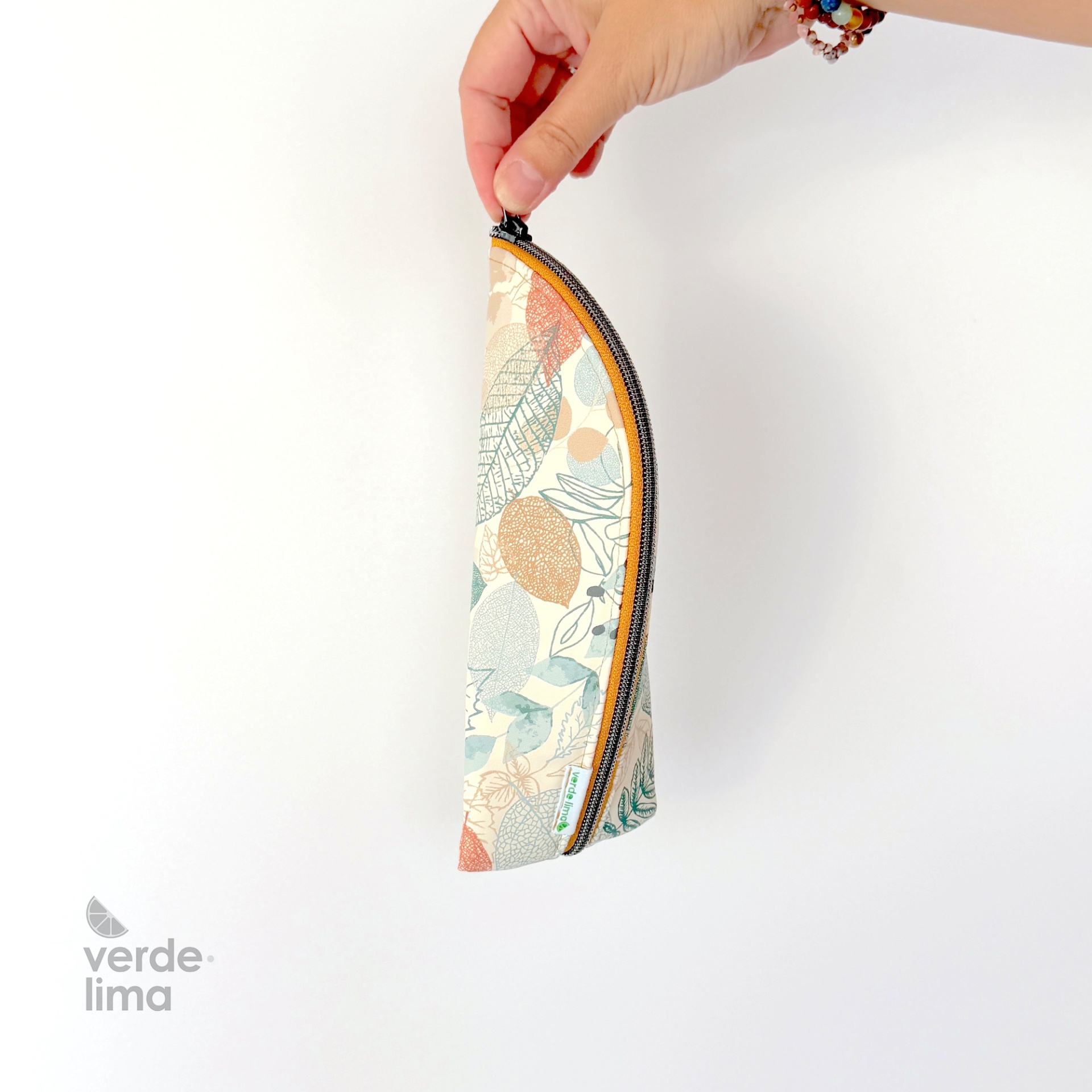 O estojo meia lua é perfeito para transportar canetas e lápis. O seu fecho amplo permite ver e retirar facilmente o seu conteúdo. O seu interior em tecido raincoat permite que o forro seja facilmente lavável.