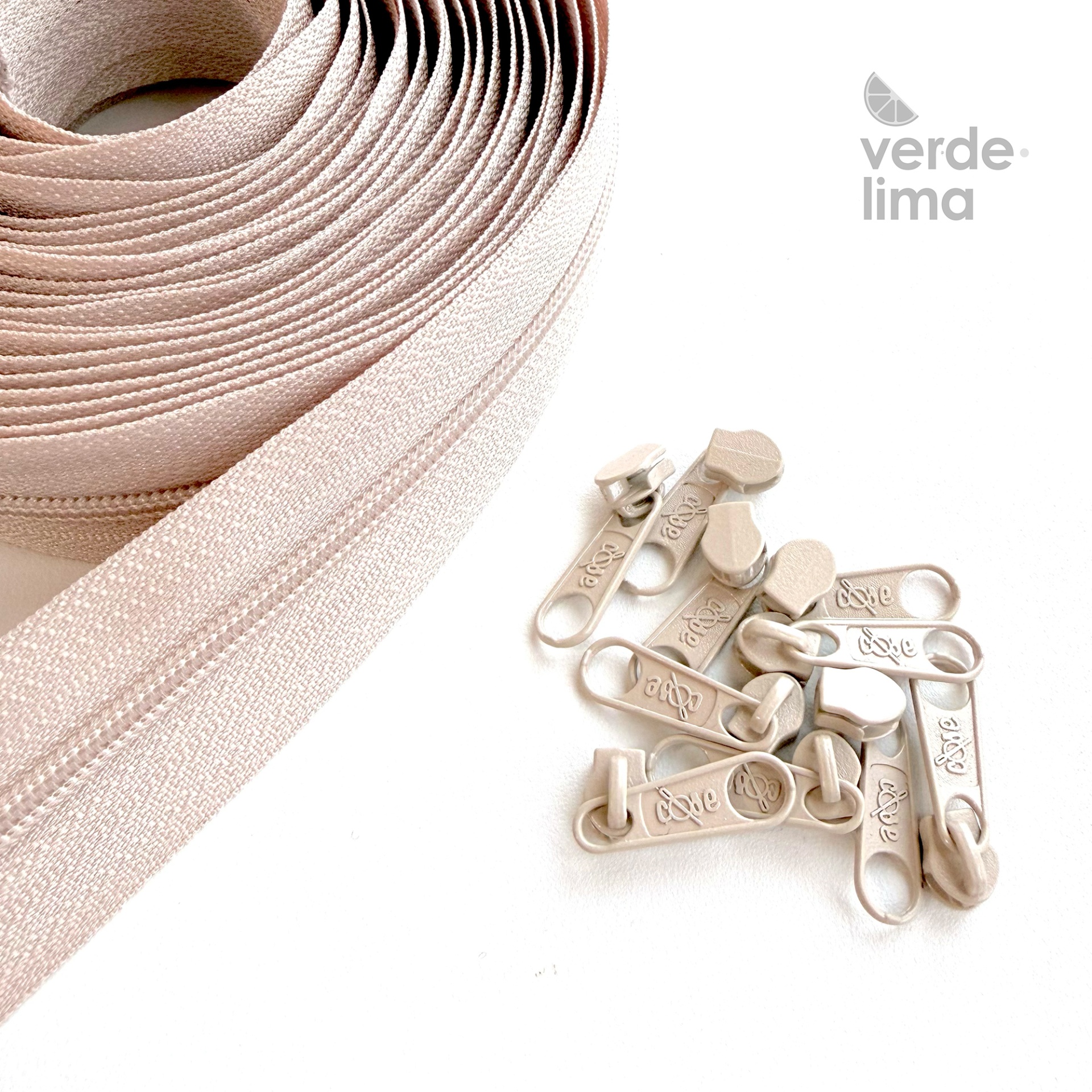 Cada conjunto inclui aproximadamente 5 metros de fecho e 10 cursores. Os conjuntos são fornecidos em separado.