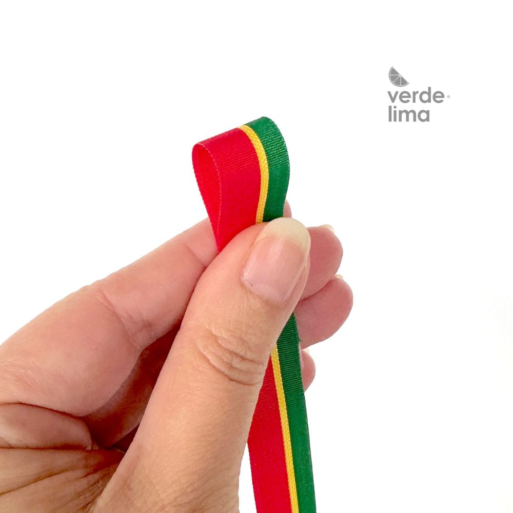 Fita de gorgurão com as cores da bandeira portuguesa com 15mm de largura.