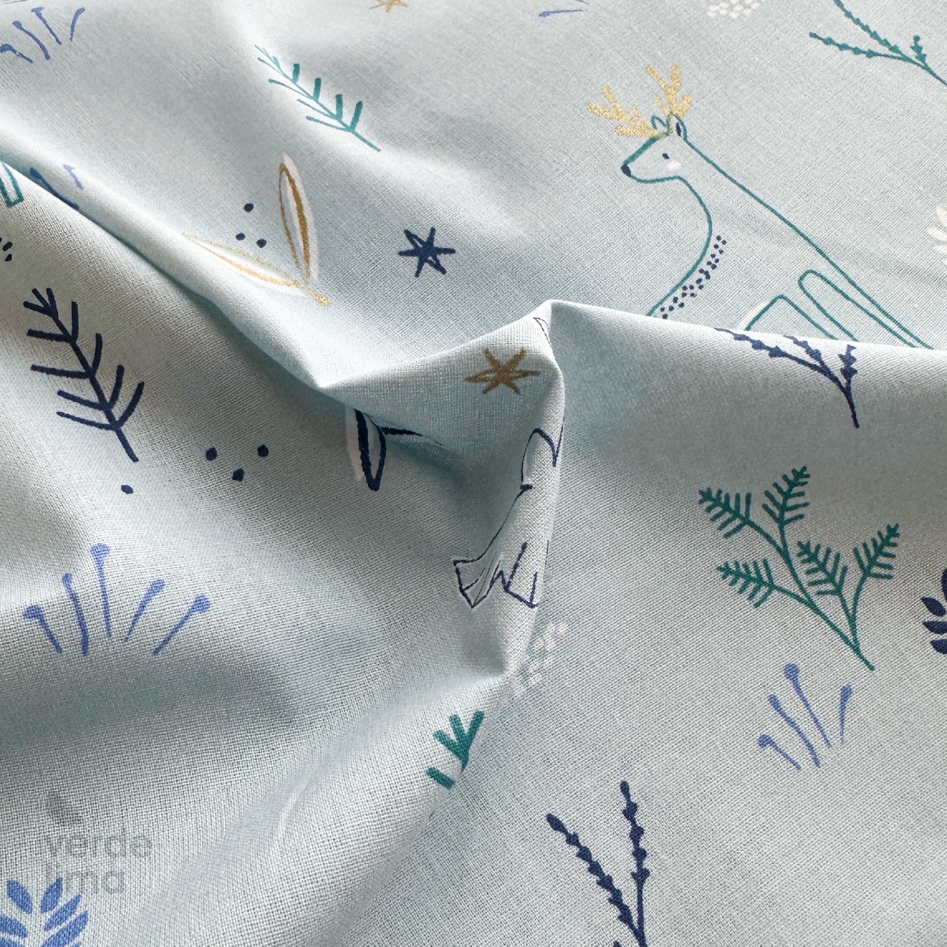 Tecido de Algodão - Floresta Encantada - Fundo azul (Glitter)
