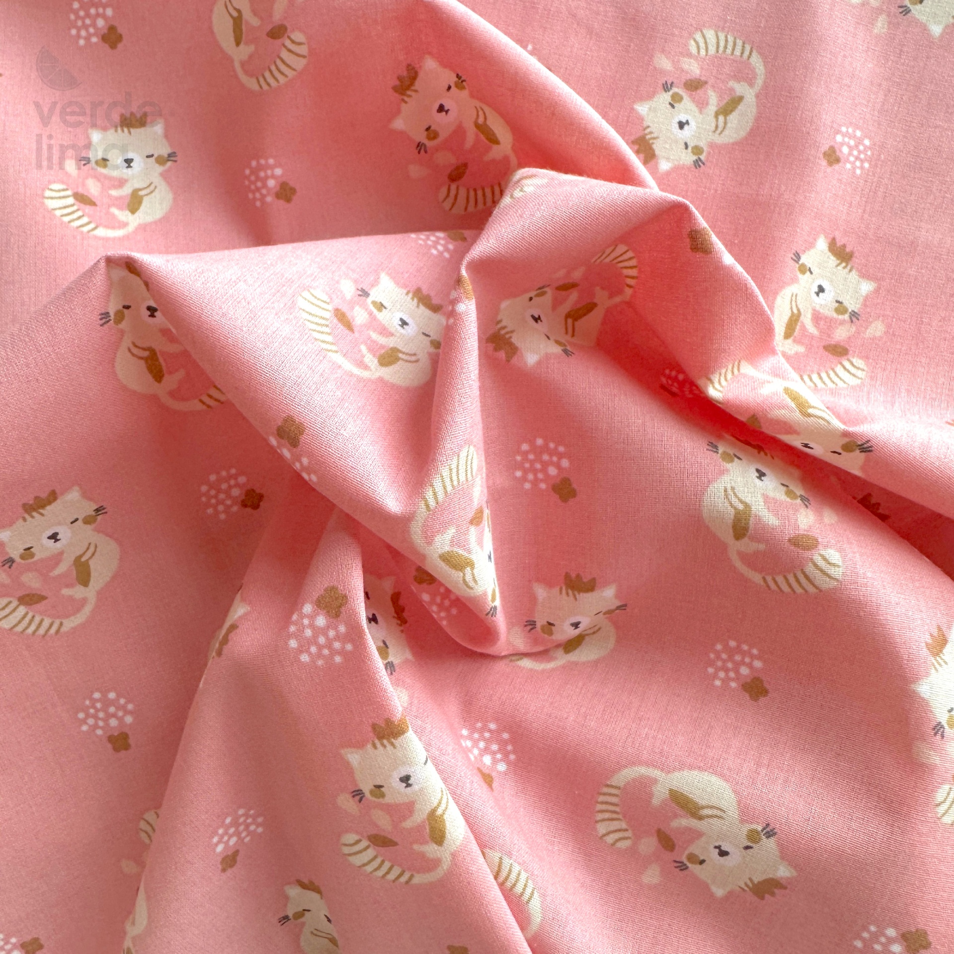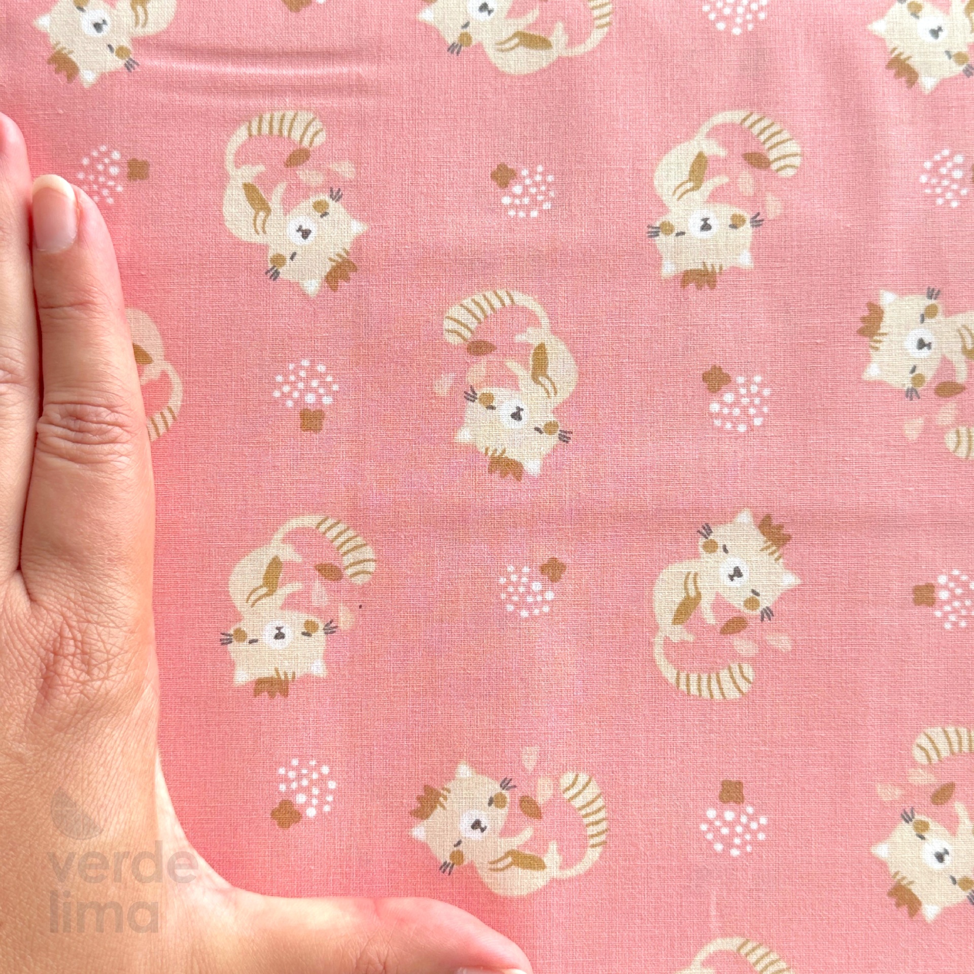 Tecido de Algodão - Friendly Cat - Gatinhos fundo rosa