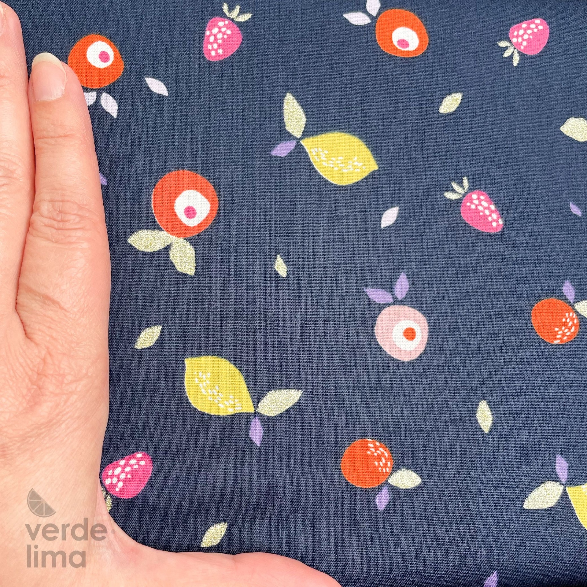 Tecido de Algodão - Fruits - Azul Marinho com Glitter