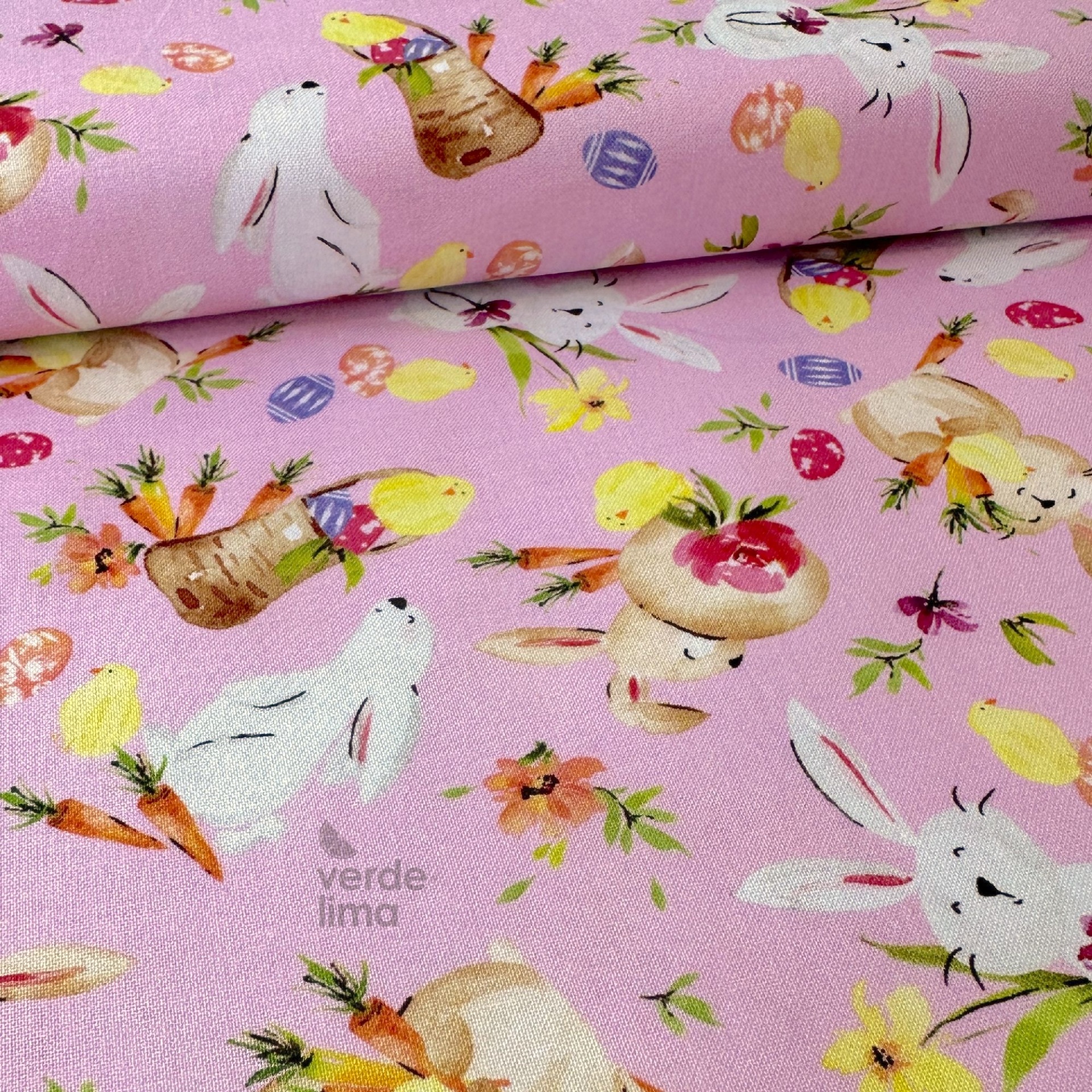 Tecido de Algodão - Hoppy Easter - Coelhinhos fundo rosa