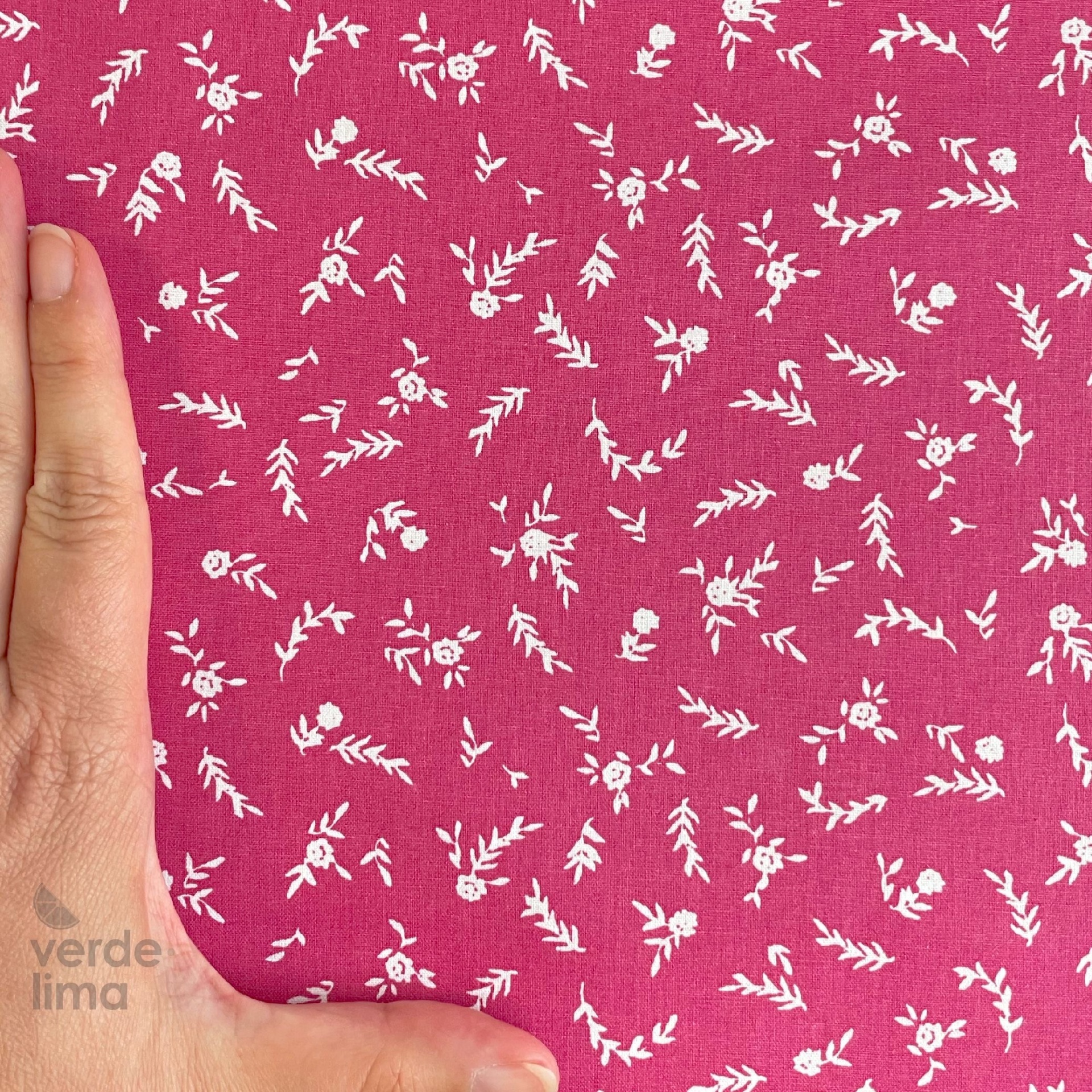 Tecido de algodão - Jardim encantado - Floral fundo rosa forte