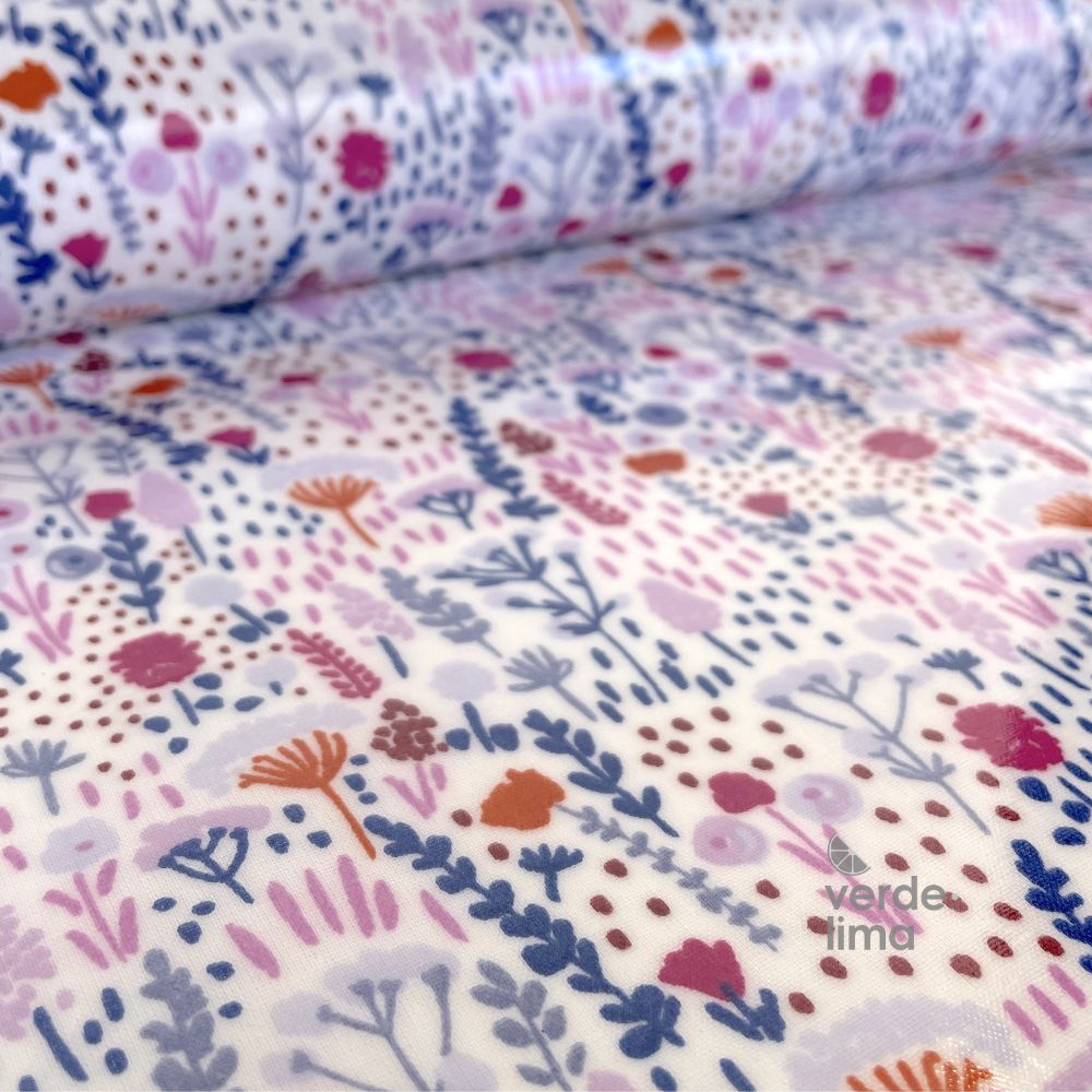 Tecido Plastificado -Jardim encantado - Flores lavanda