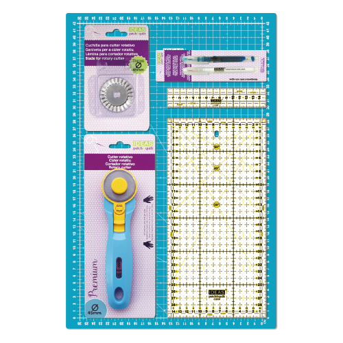 Home Ferramentas e Acessórios Kit de Iniciação ao patchwork Kit de Iniciação ao patchwork SKU: C1041_uni Cor Turquesa Rosa 35,00 € Desconto de %. IVA incluído. Ganhe 70 Pontos Verde Lima ao comprar este produto! Saber mais Comprar Contactar Adicionar à wishlist Kit com as ferramentas necessárias para iniciar no mundo do patchwork e costura criativa. Inclui: Base de corte 45x30cm com marcações em centímetros de um lado e em polegadas no outro.Régua 15x30cm Régua 3x15cm 2 canetas que saiem com água (1 azul e 1 branca). Cortador rotativo com lâmina de 45mm. Lâmina zig zag para cortador. Marca Ideas Patch & Quilt Partilhar