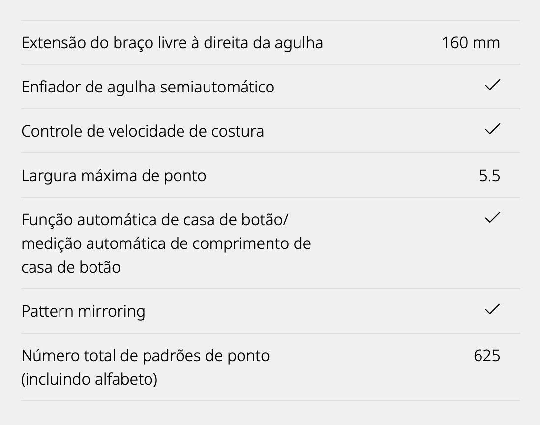 VELOCIDADE MÁXIMA DE COSTURA (PONTOS POR MINUTO) - 900