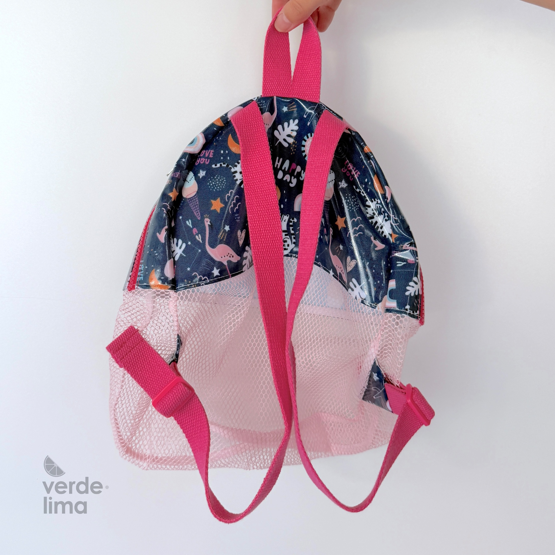 A mochila com rede é perfeita para transportar os brinquedos de praia, a sua base em rede permite que a areia se solte dos brinquedos e fique na praia em vez de ficar dentro da mochila. O seu tamanho permite ser transportado pela própria criança.