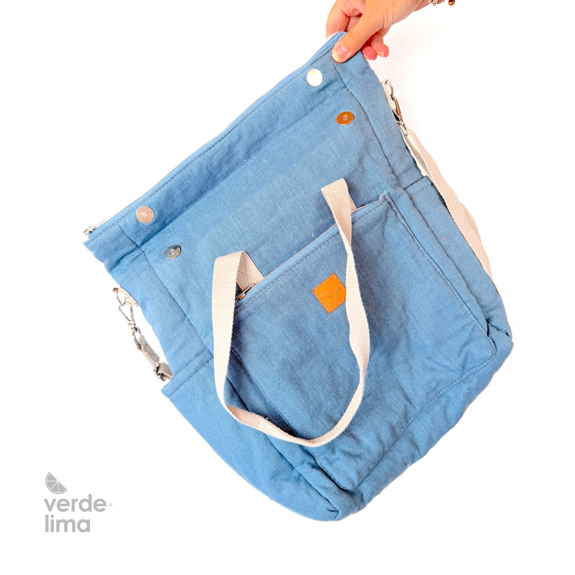 Mochila multiposições - linho liso azul ganga
