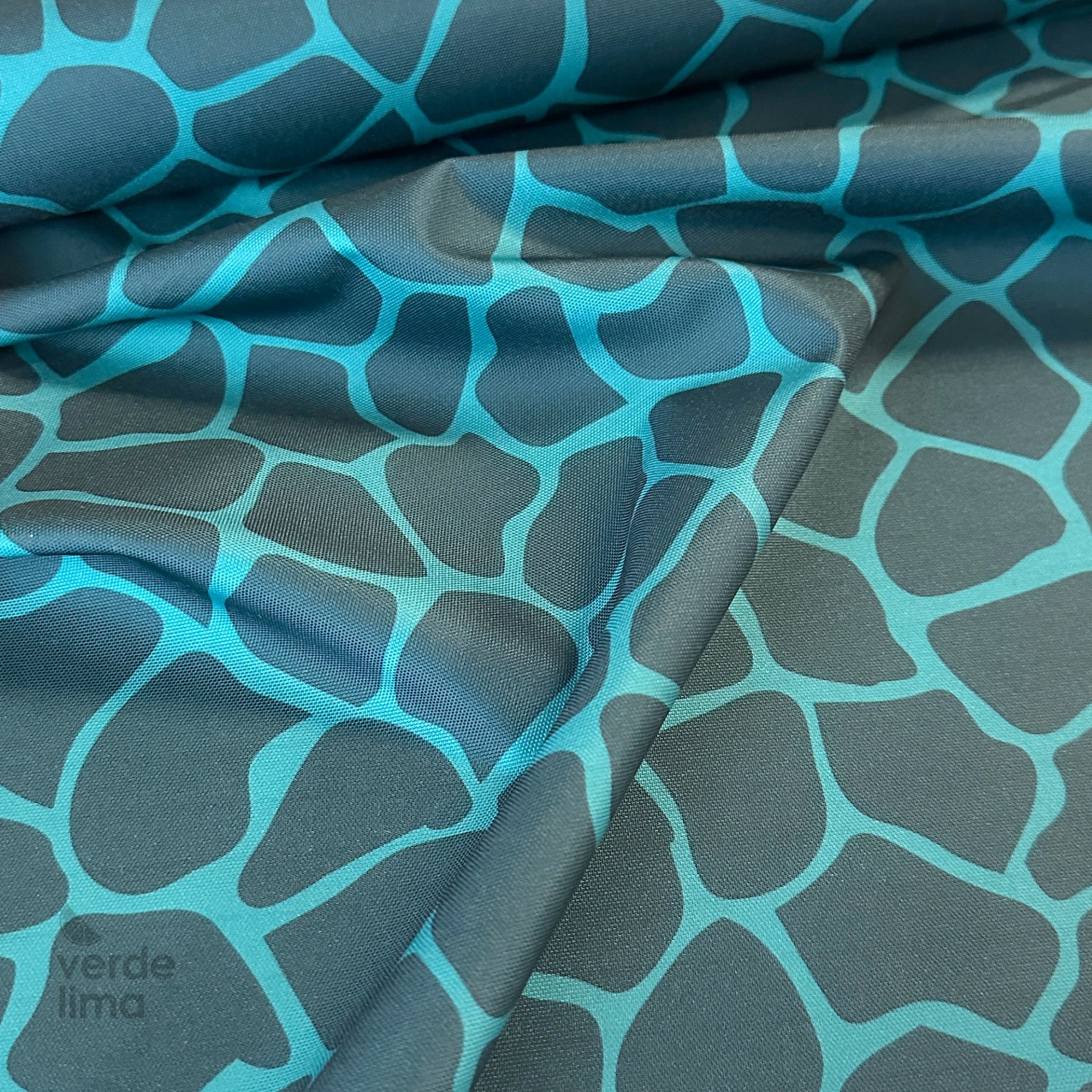 Tecido ligeiramente texturado e com uma camada de plástico no avesso que o torna impermeável, resistente mas maleável, muito fácil de trabalhar pois não desfia.