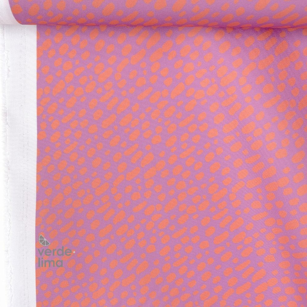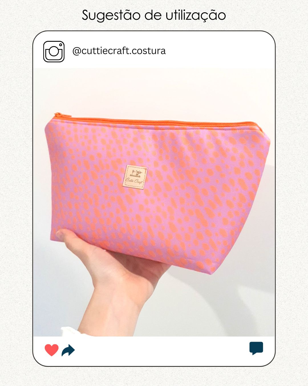ligeiramente texturado e com uma camada de plástico no avesso que o torna impermeável, resistente mas maleável, muito fácil de trabalhar pois não desfia.