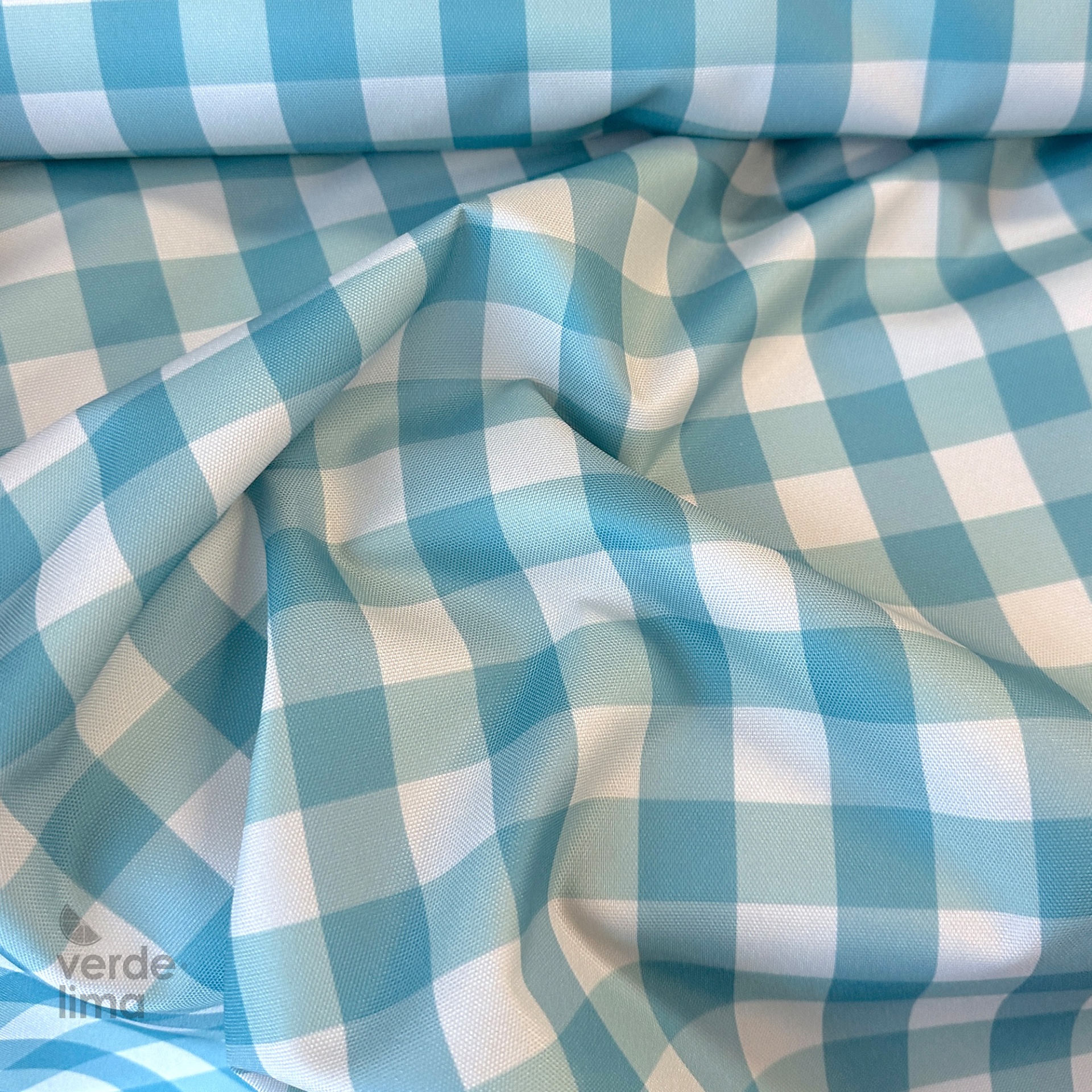 Tecido ligeiramente texturado e com uma camada de plástico no avesso que o torna impermeável, resistente mas maleável, muito fácil de trabalhar pois não desfia.