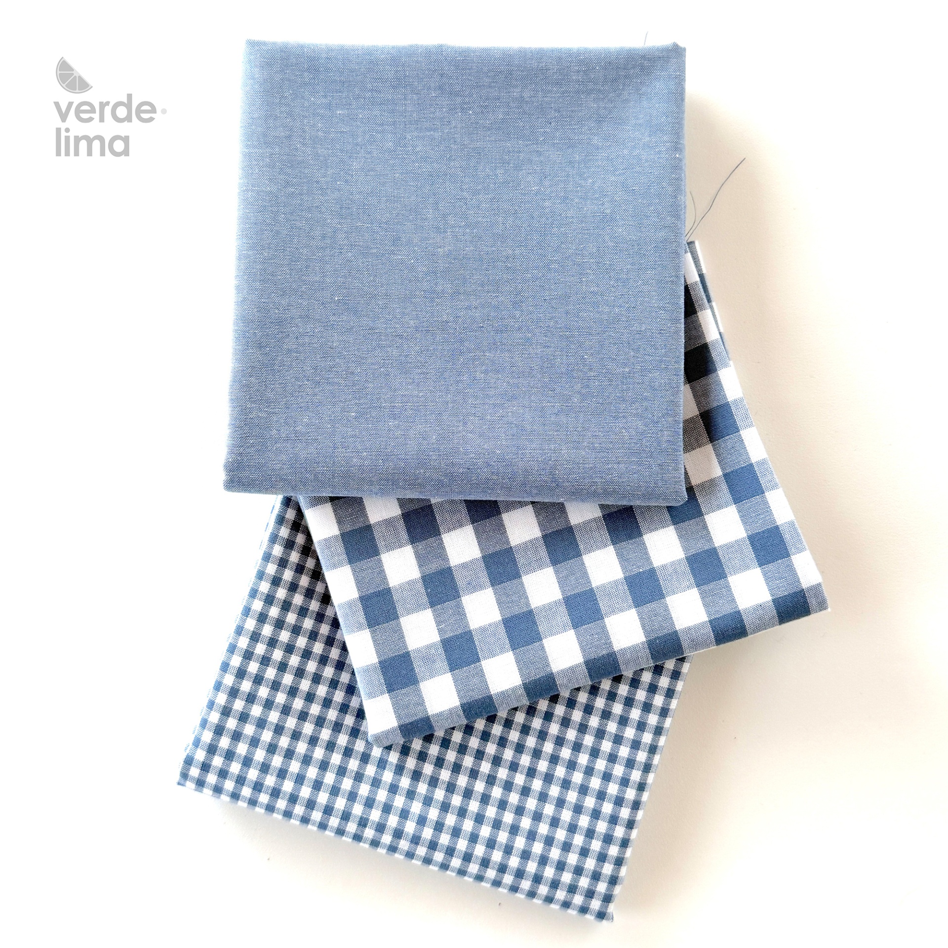Pack de retalhos - Vichy e cambraia de algodão - Azul ganga