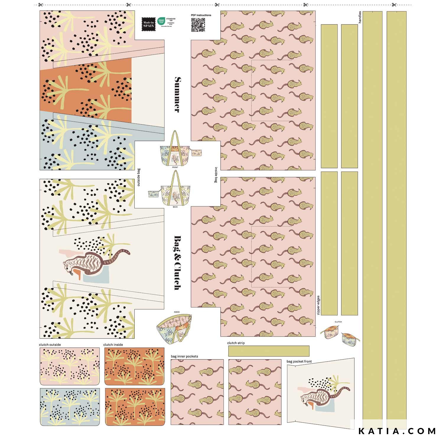 Costure facilmente uma bolsa grande com fundo e alças graças ao Painel Summer Bag & Clutch Panel. Pode costurar uma bolsa de higiene para combinar com a bolsa. É fácil de fazer porque é um pedaço de tecido 100% estampado em tela para cortar e costurar.