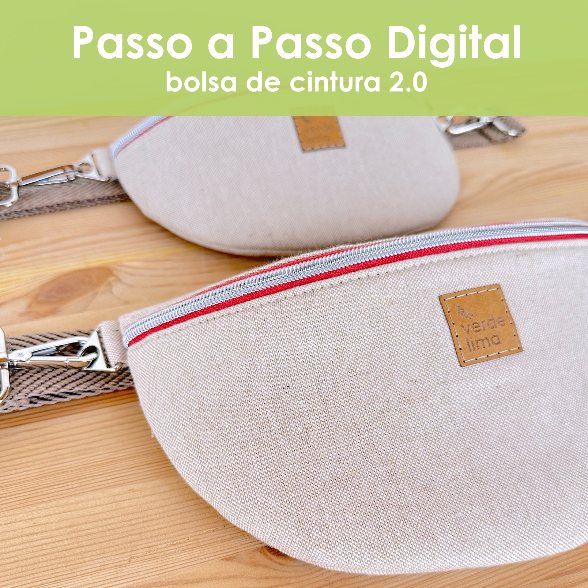 Ao adquirir o passo a passo da bolsa de cintura da verde lima terá acesso aos moldes e ao plano de corte para os dois tamanhos.
