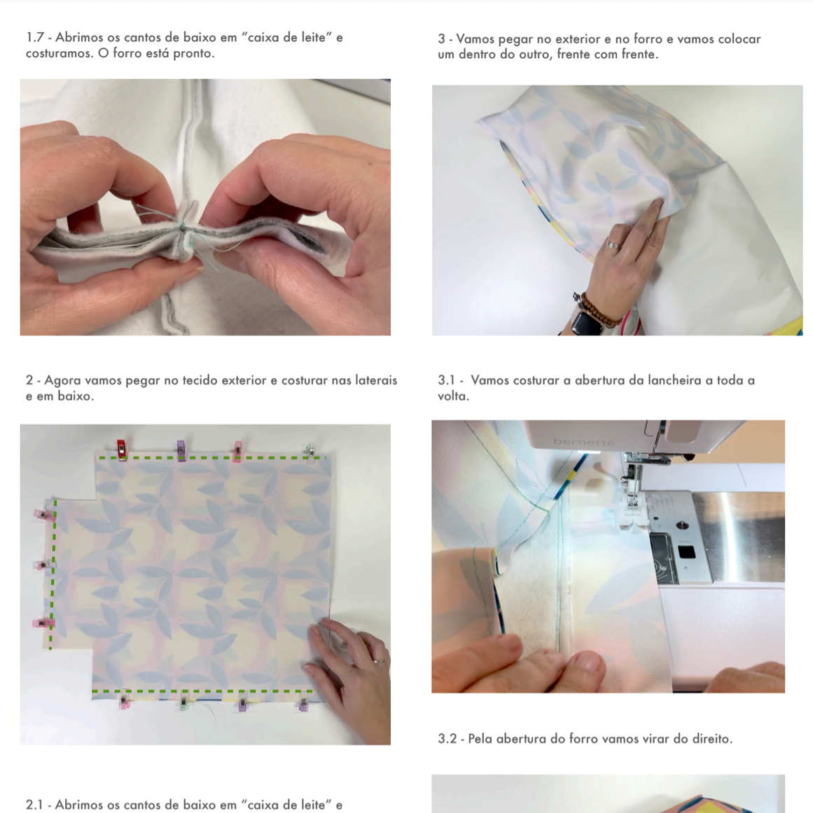 Ao adquirir o passo a passo da lancheira de enrolar verde lima terá acesso a um E-Book em PDF com todas as medidas e passos necessários para costurar o projecto.