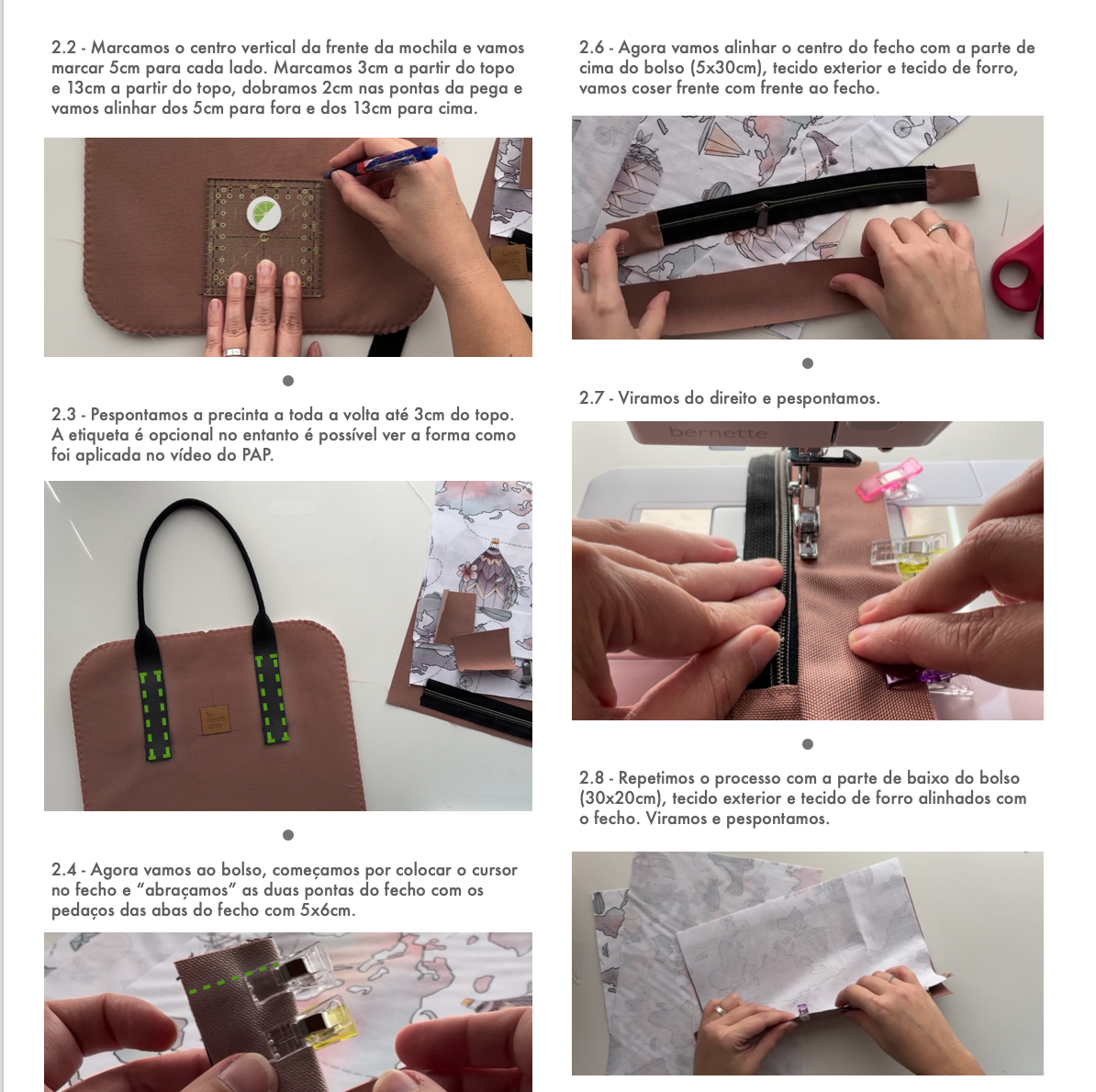 Ao adquirir o passo a passo da mochila de cabine verde lima terá acesso a um E-Book em PDF com todas as medidas e passos necessários para costurar o projecto, os moldes e medidas e o plano de corte.