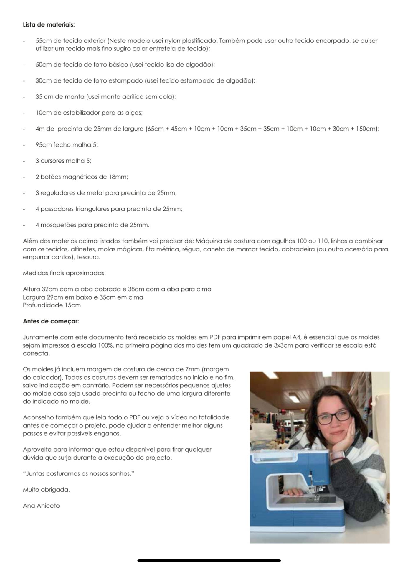 • Vídeo falado e legendado em português, como a confecção da mochila de início ao fim;