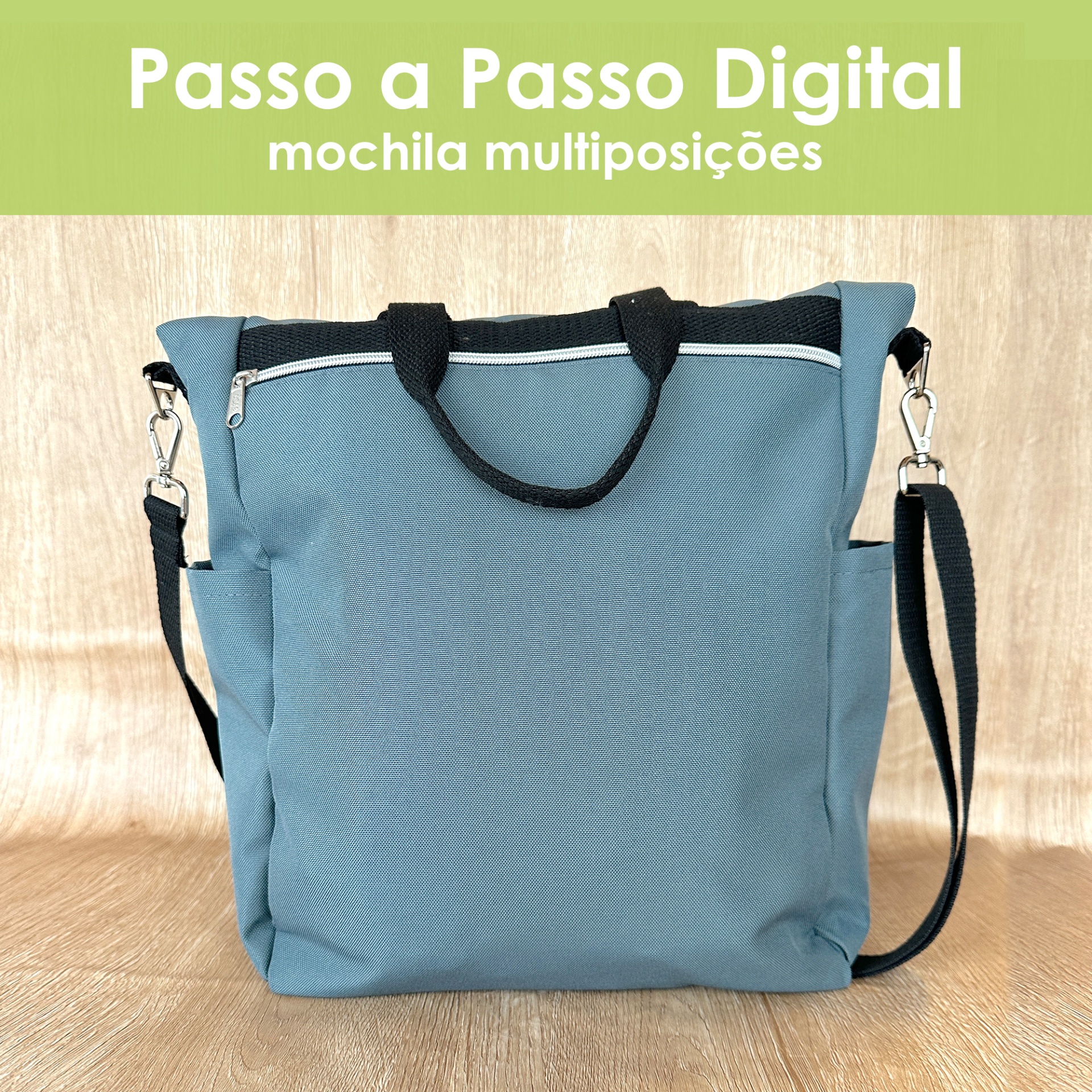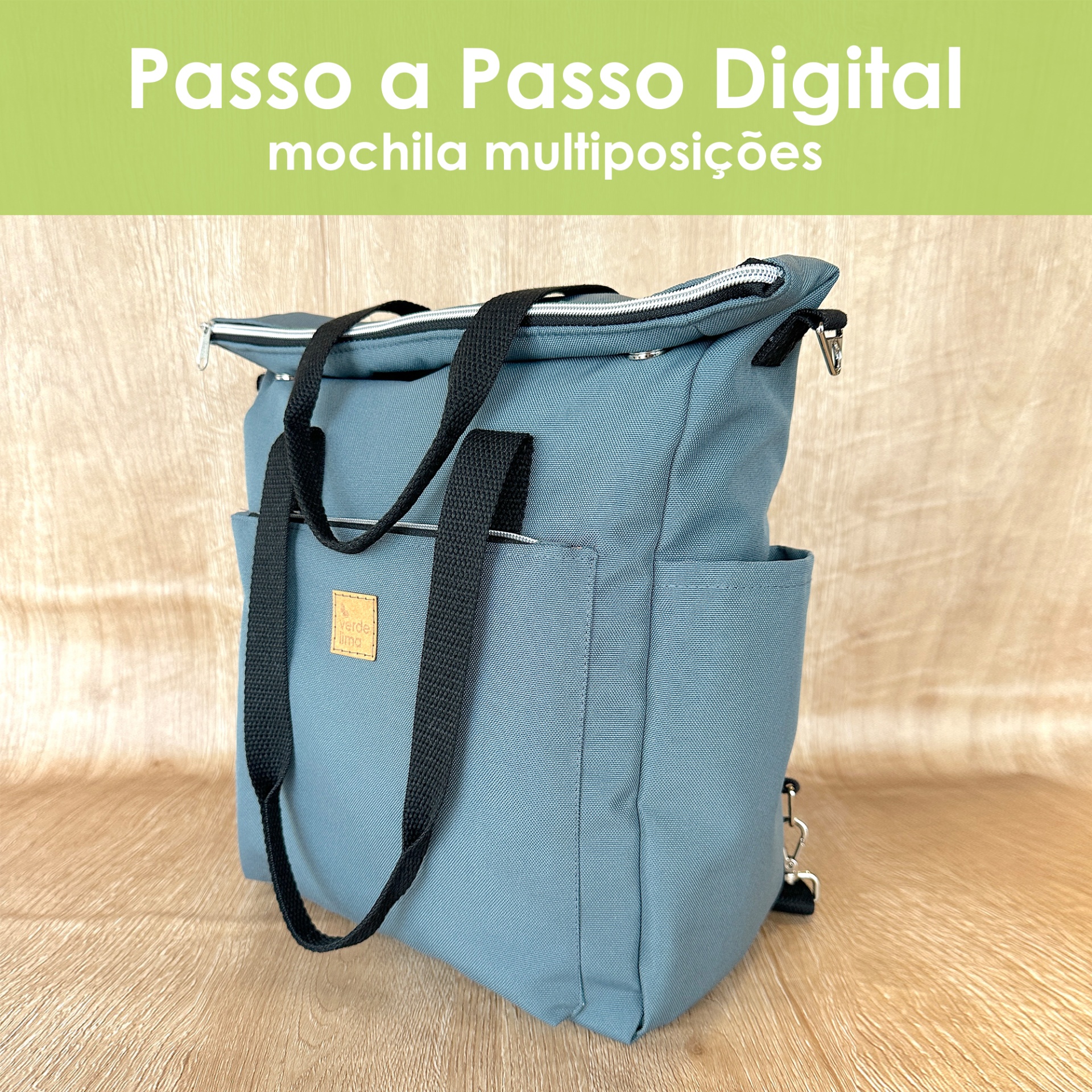 Ao adquirir o passo a passo da mochila multiposições da verde lima terá acesso a um E-Book em PDF com todos os passos necessários para costurar o projeto, os moldes para imprimir em A4 e o plano de corte.