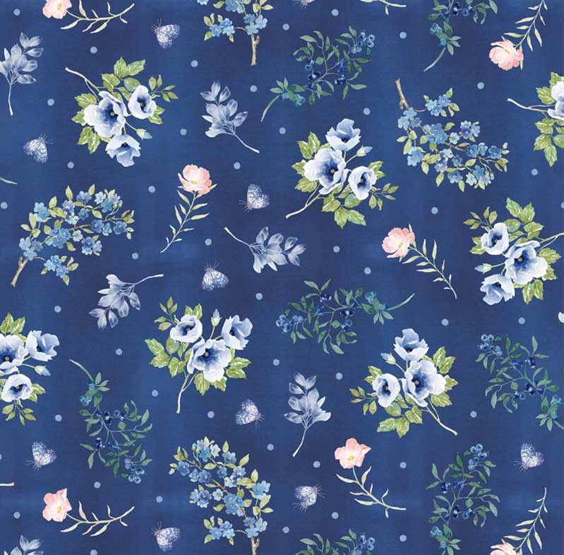 Tecido de Algodão - Indigo Petals - Blue Roses