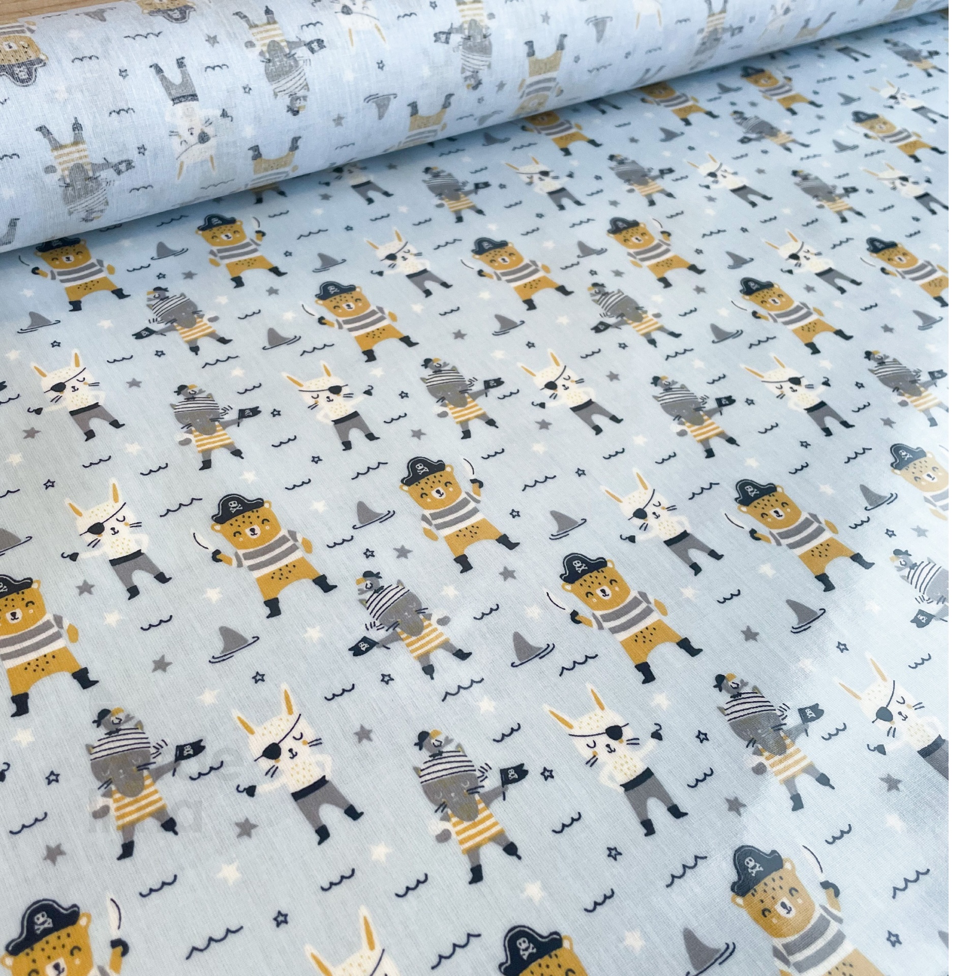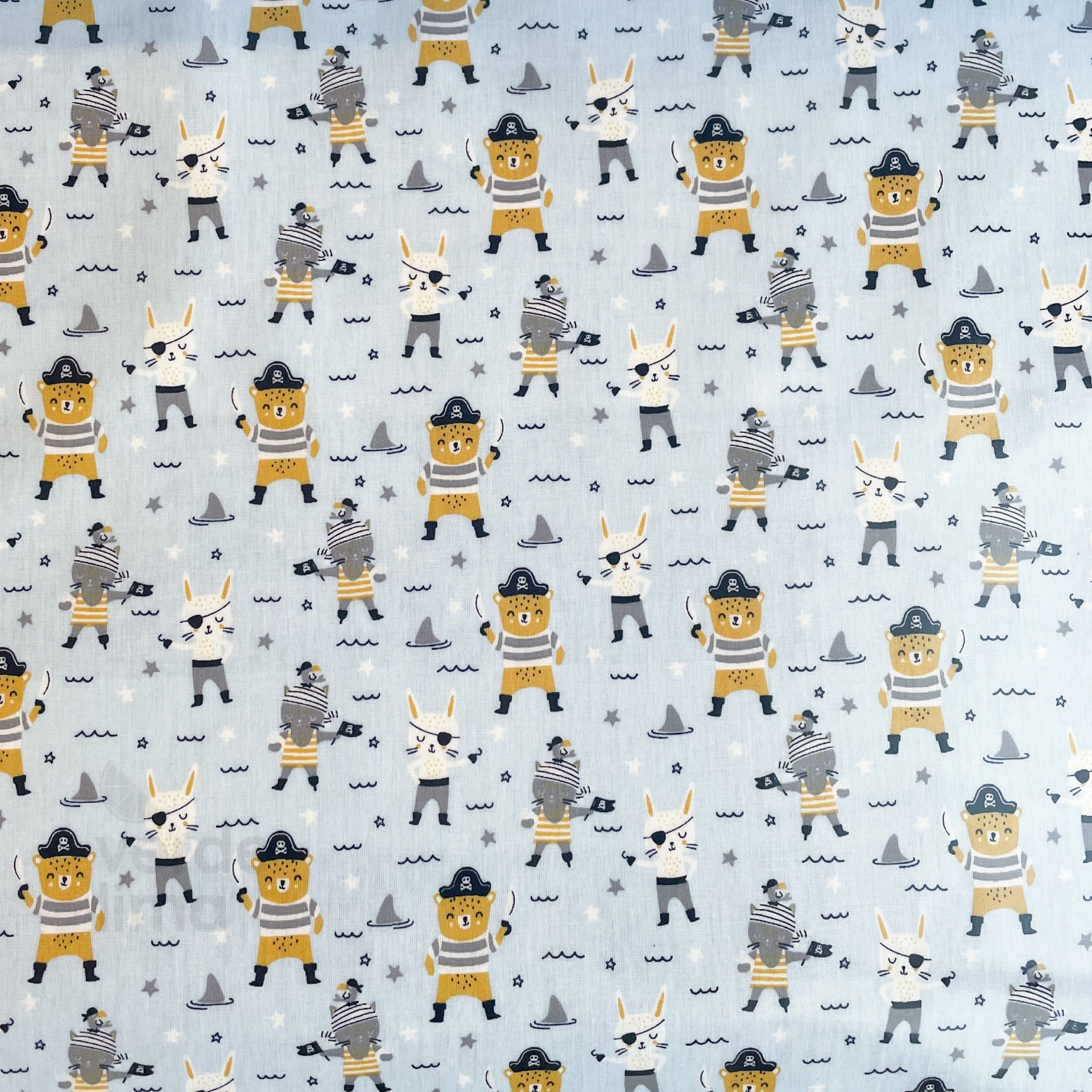 Tecido Plastificado - Pirates Animals Gang - Azul Claro