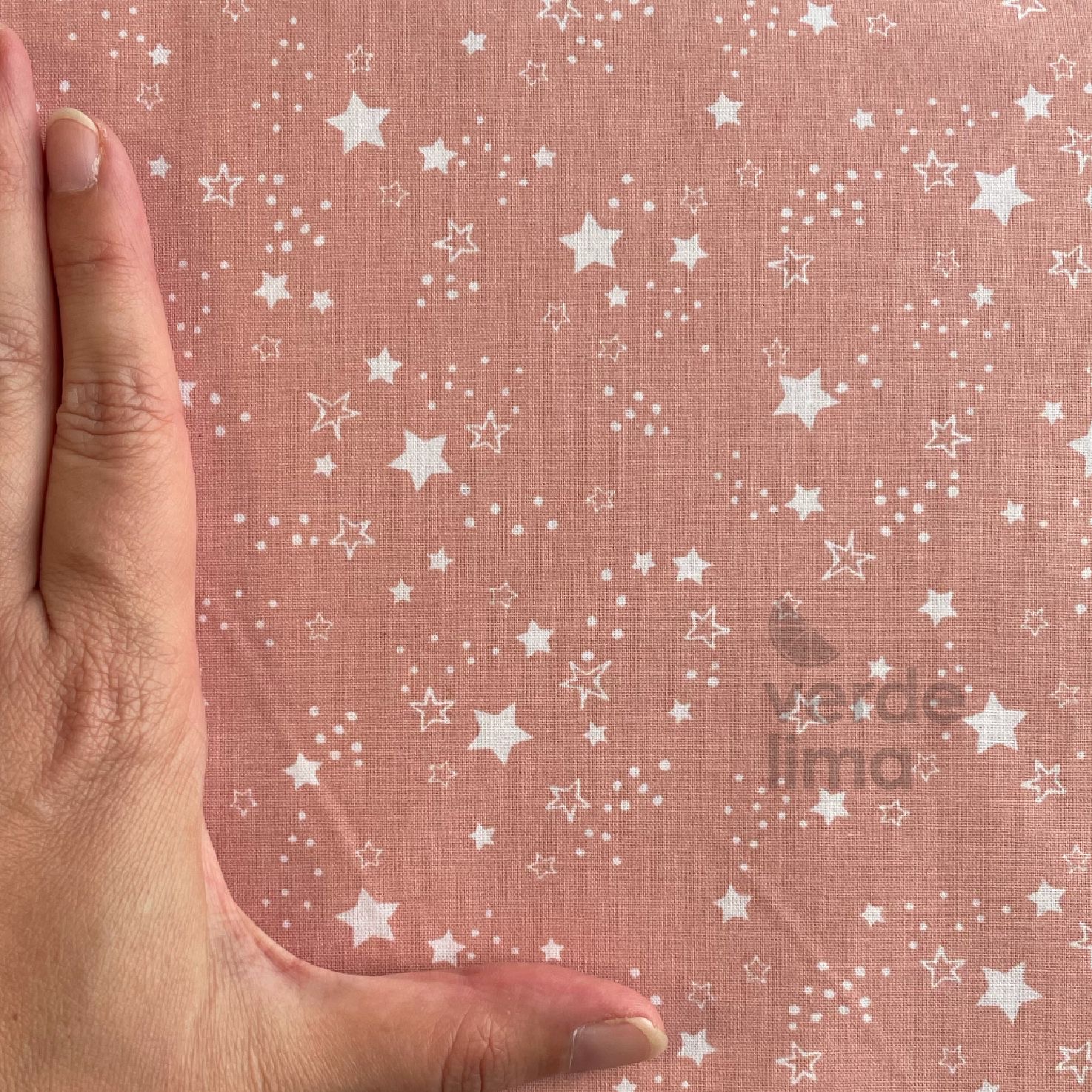 Tecido de algodão - Ratinho nas estrelas - Estrelas Salmão