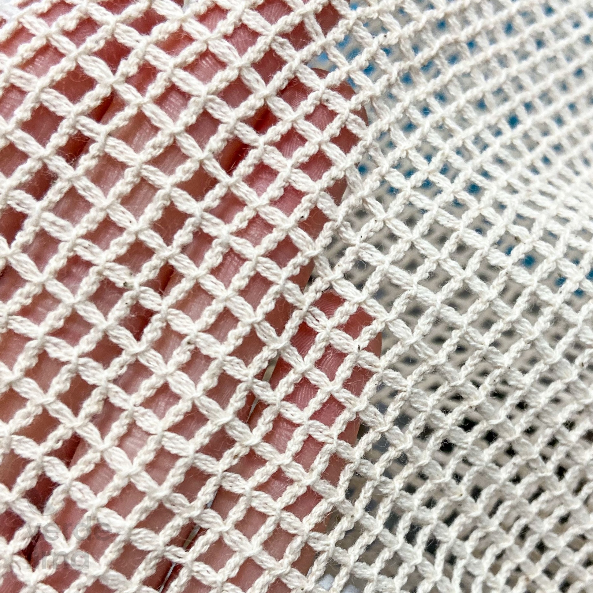 Rede 100% algodão orgânico com orificios com cerca de 4mm