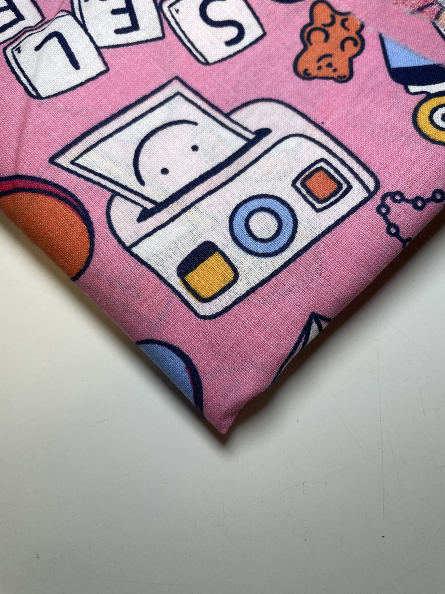 Retalho 17x150cm - Tecido de Algodão - Kawaii - fundo rosa