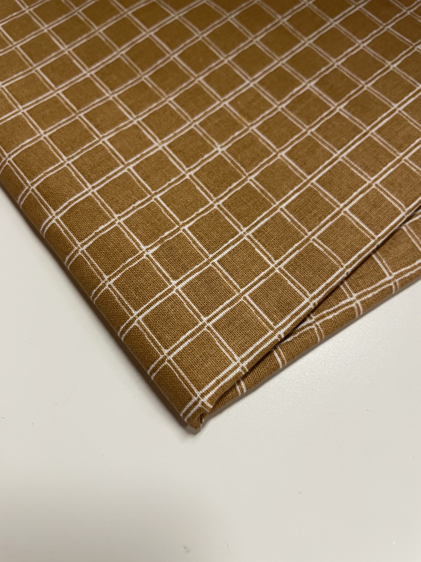Estampado com quadriculado de linhas brancas em fundo tom caramelo.