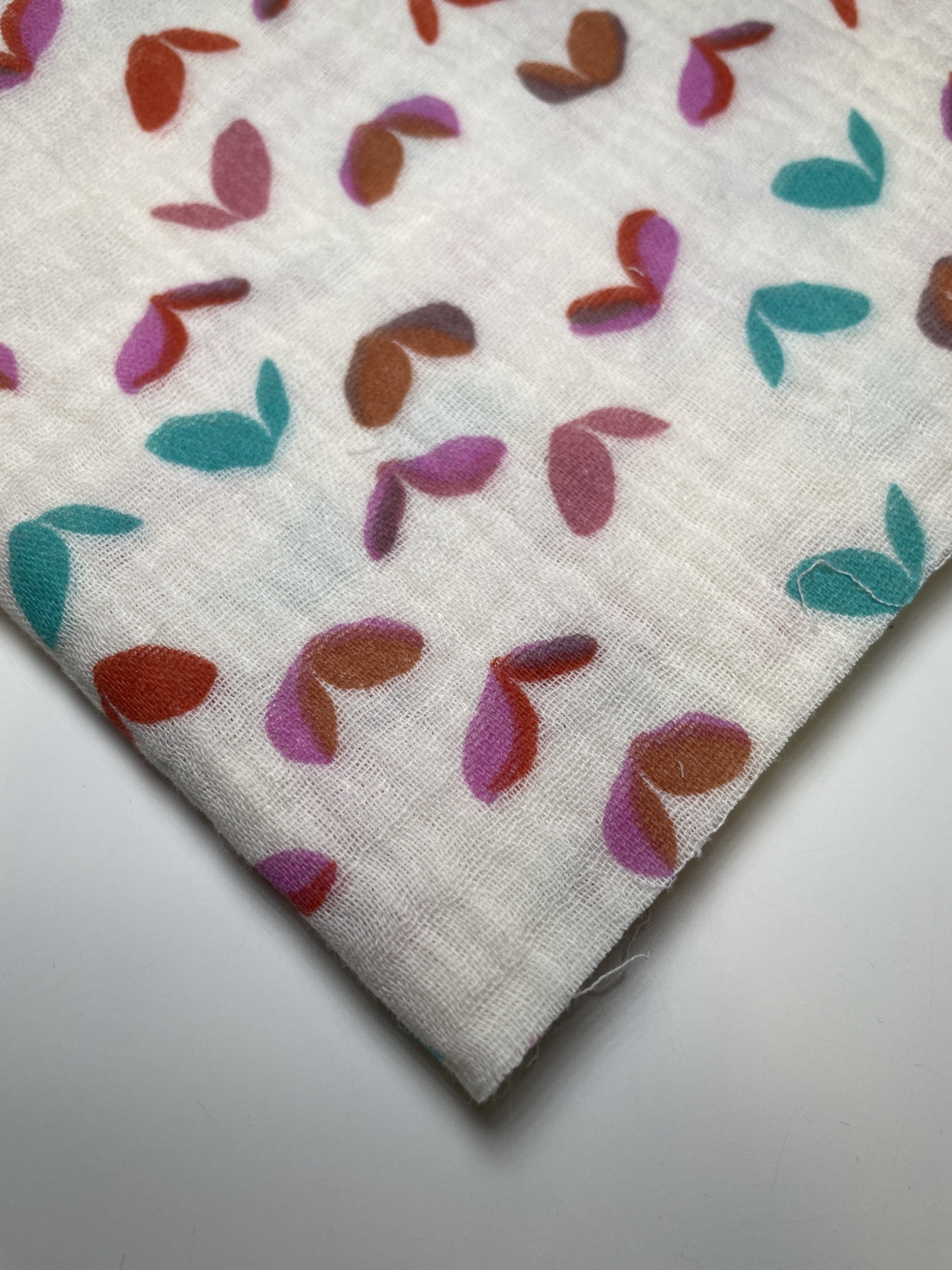 Retalho 26x140cm - Musselina - Folhagens coloridas fundo bege