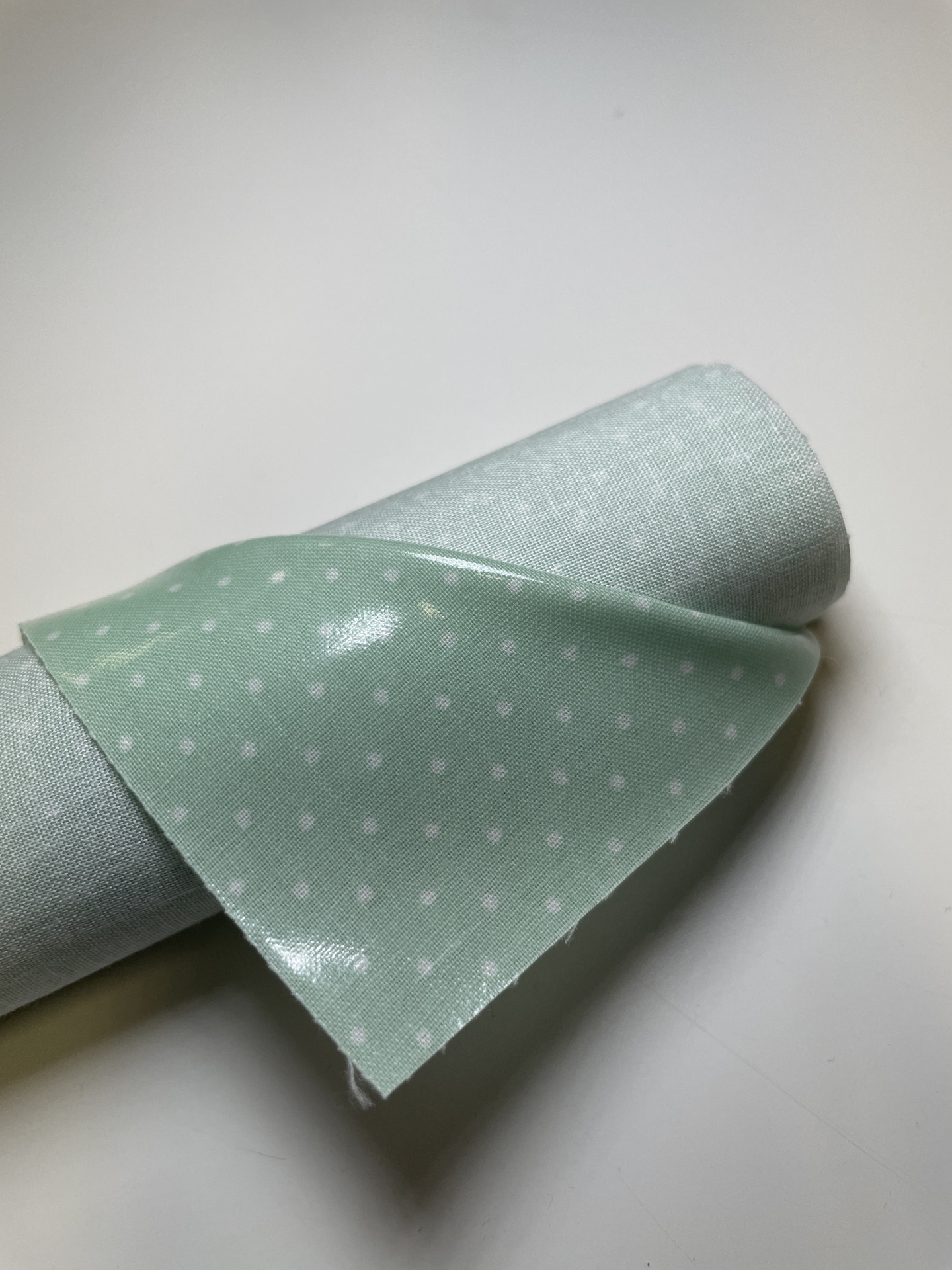 Retalho 26x140cm - Tecido Plastificado - Pintas verde menta