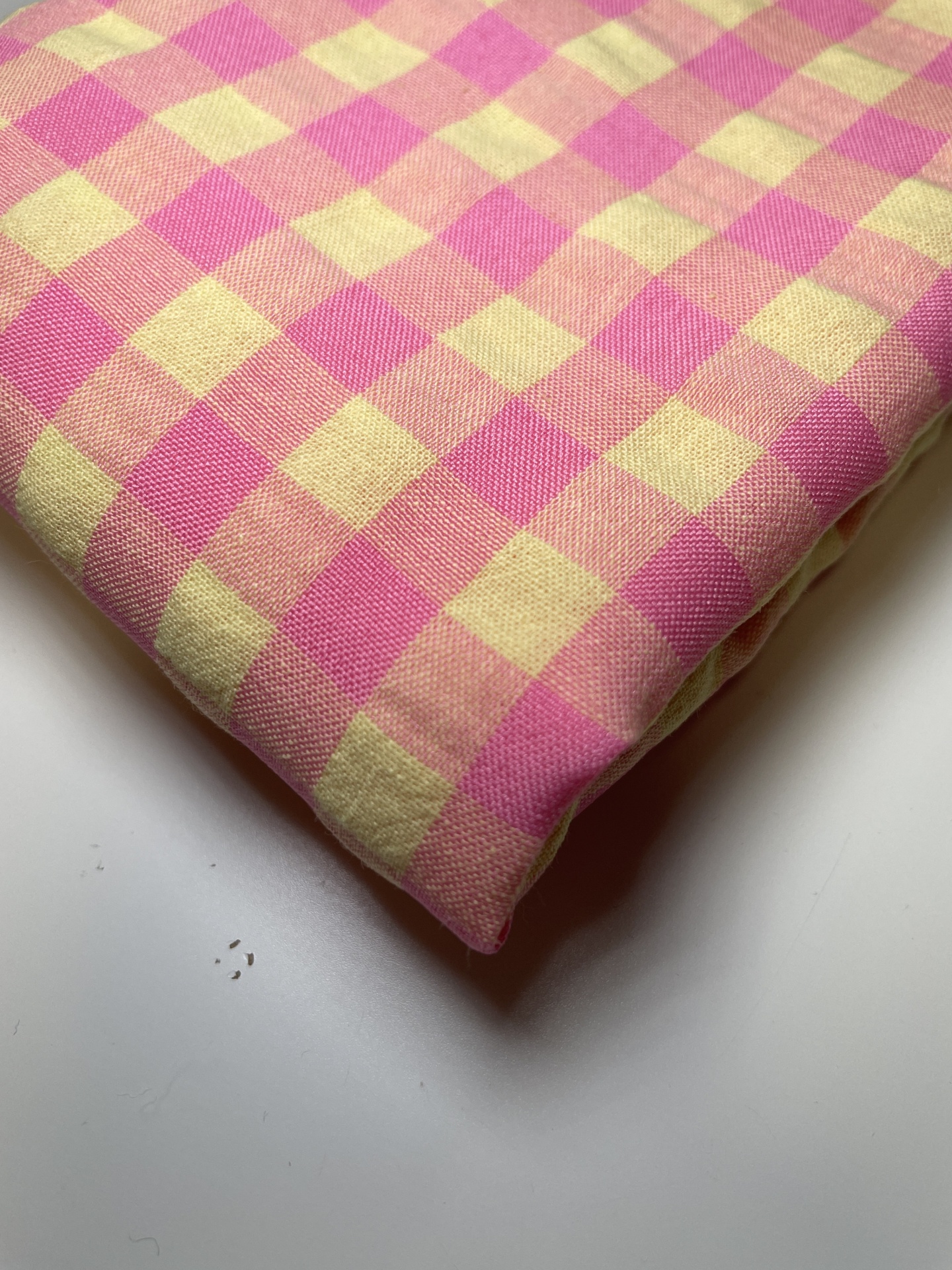 Retalho 28x145cm - Tecido Vichy - Gingham Rosa e Amarelo