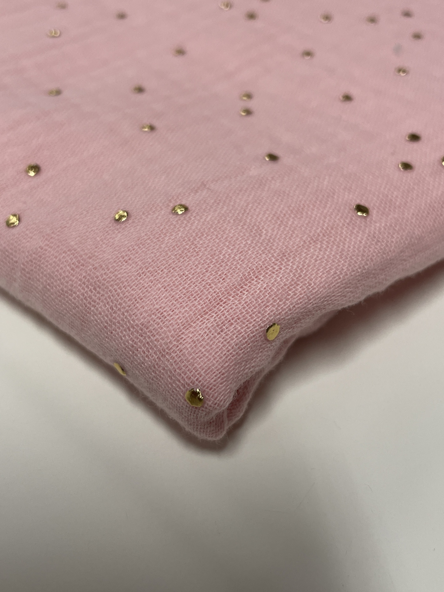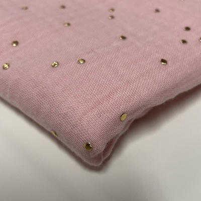 Retalho 30x140cm - Musselina gold dots - Rosa Claro