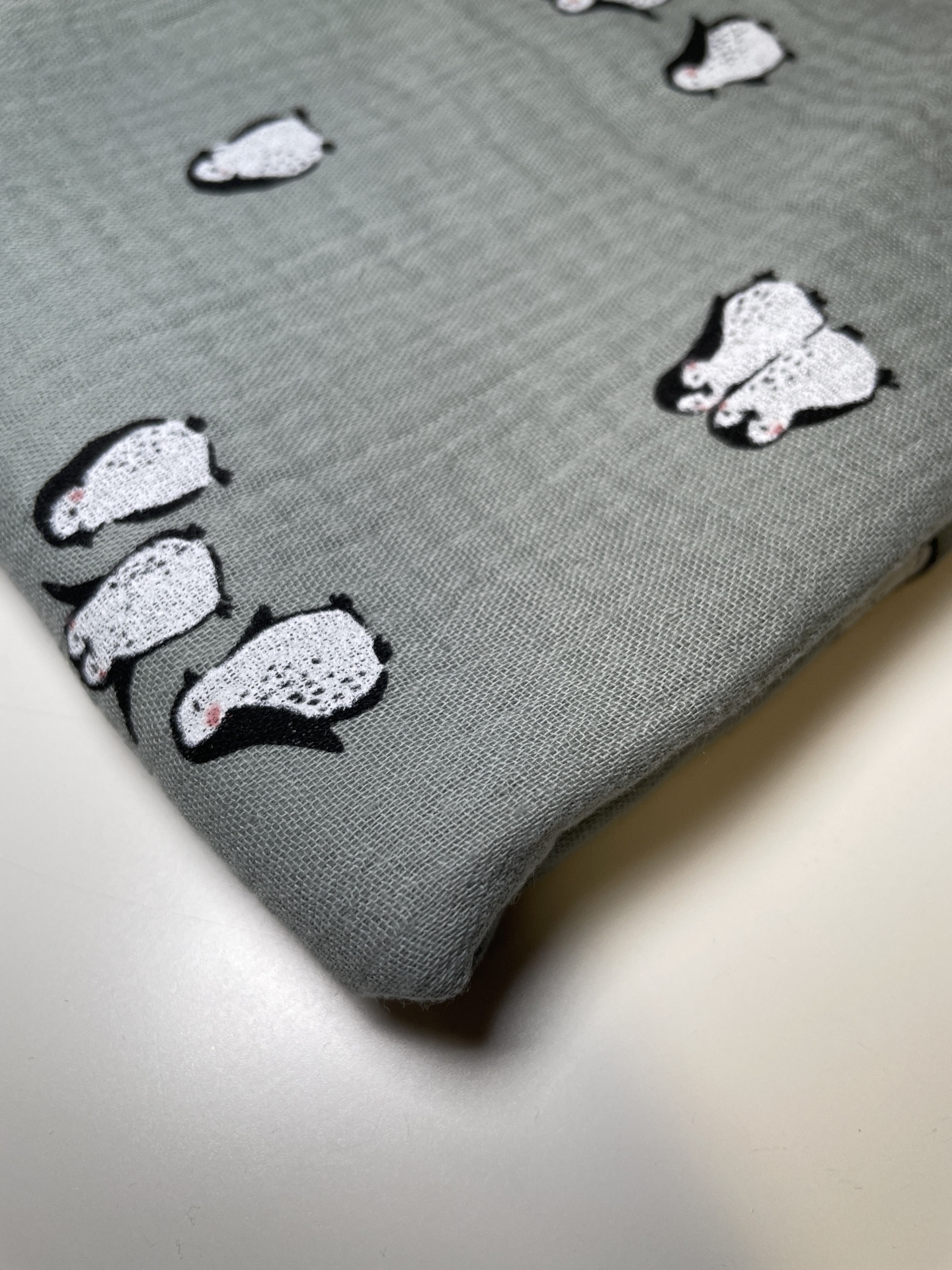 Tecido muito macio e com um toque rustico, perfeito para artigos de bebé como roupa e fraldinhas.